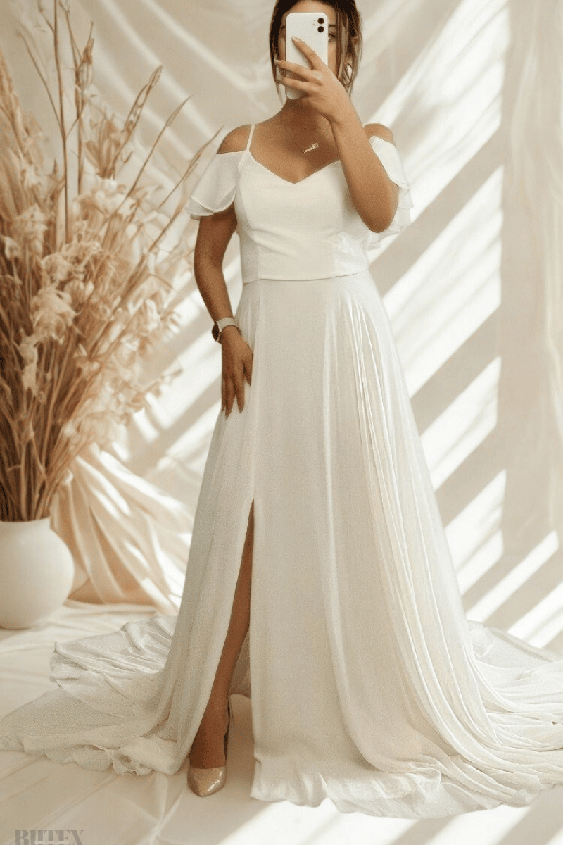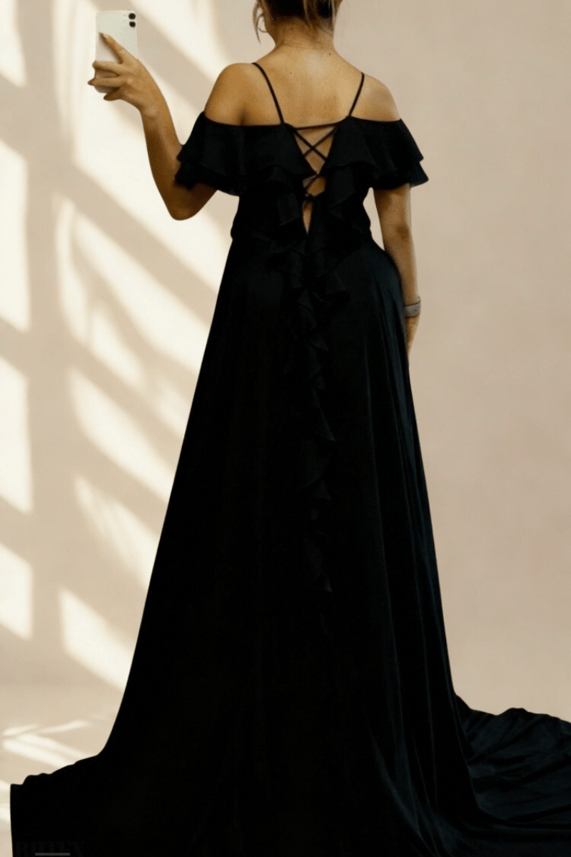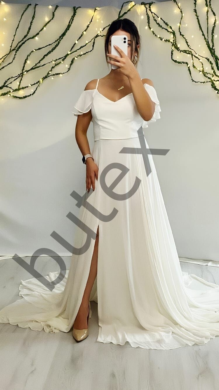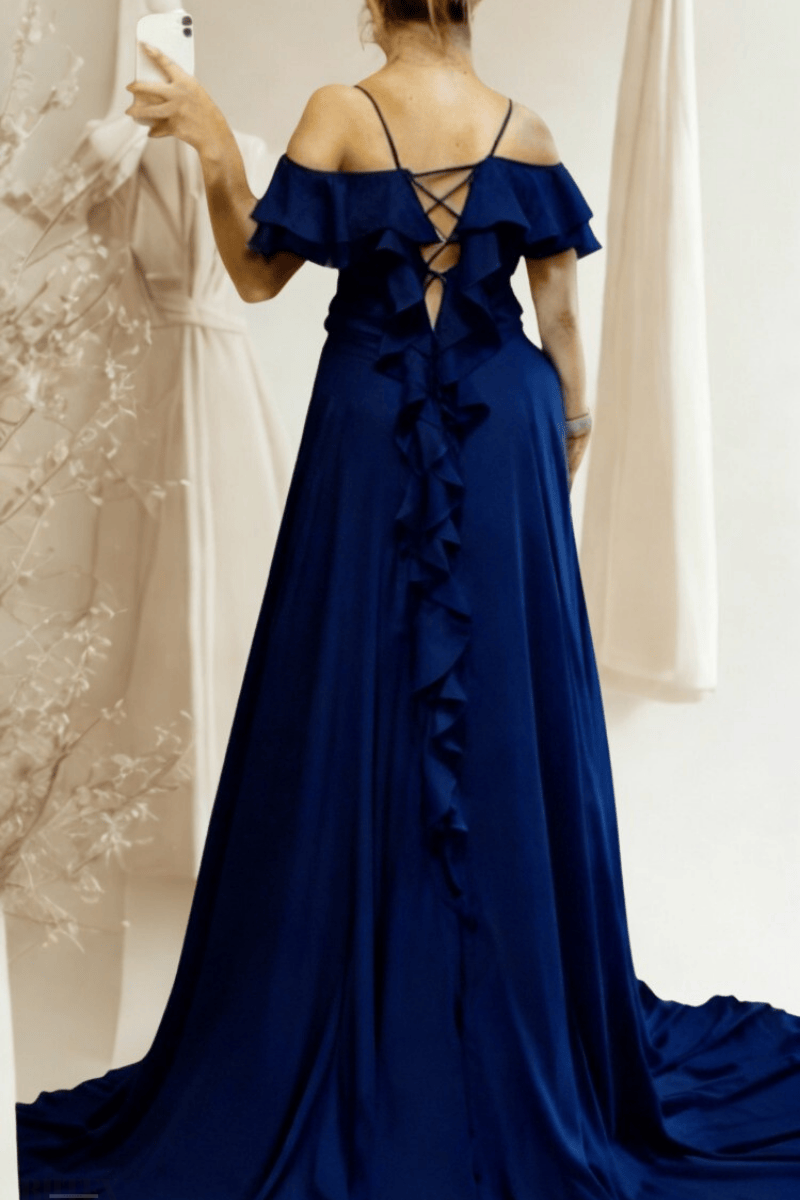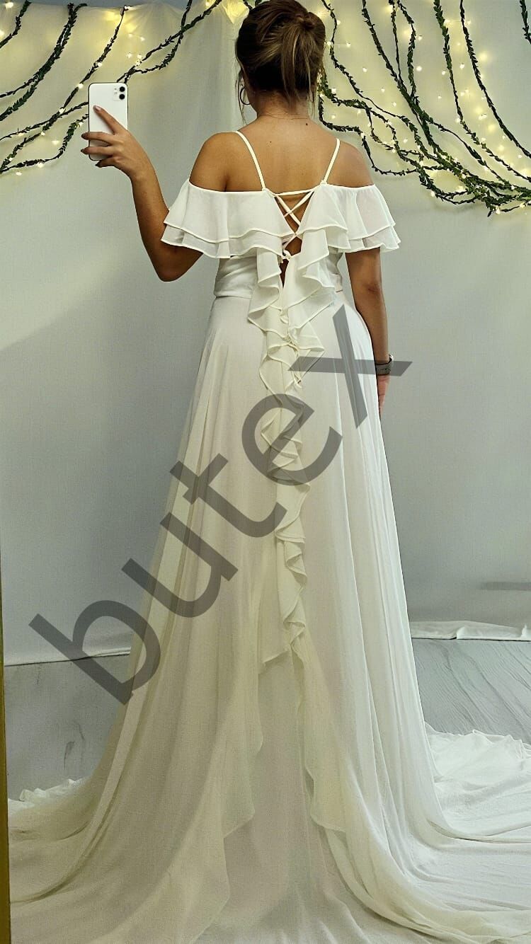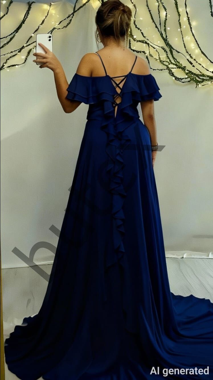 Şifon elbise, hafif ve zarif dokusuyla her özel anınızda şıklık sunar. Arka kısmında fırfır detaylı kuyruğu ve sırtı bağcıklı tasarımıyla dikkat çeker. Kuğu zarafetini yansıtan sade ama havalı modeli, özel davetler için ideal bir seçimdir. BEDEN TABLOSU İÇİN TIKLAYINIZ