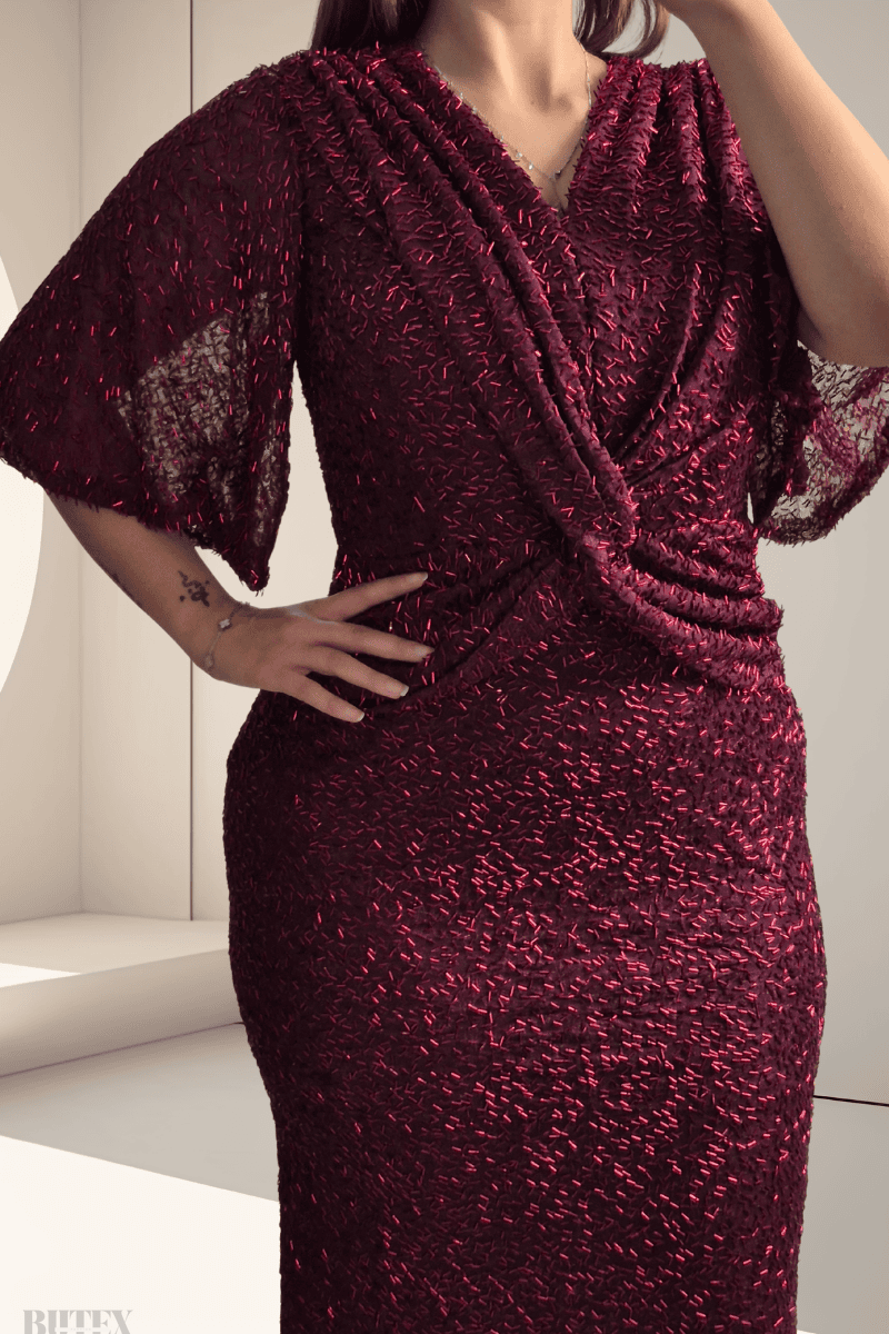 Boru Boncuklu Önü Bürümcük Büyük Beden Abiye Elbise 1134btx BORDO - 44