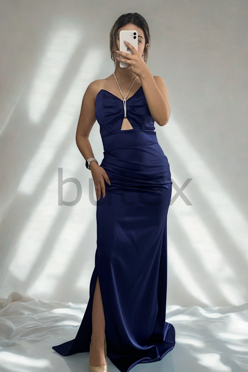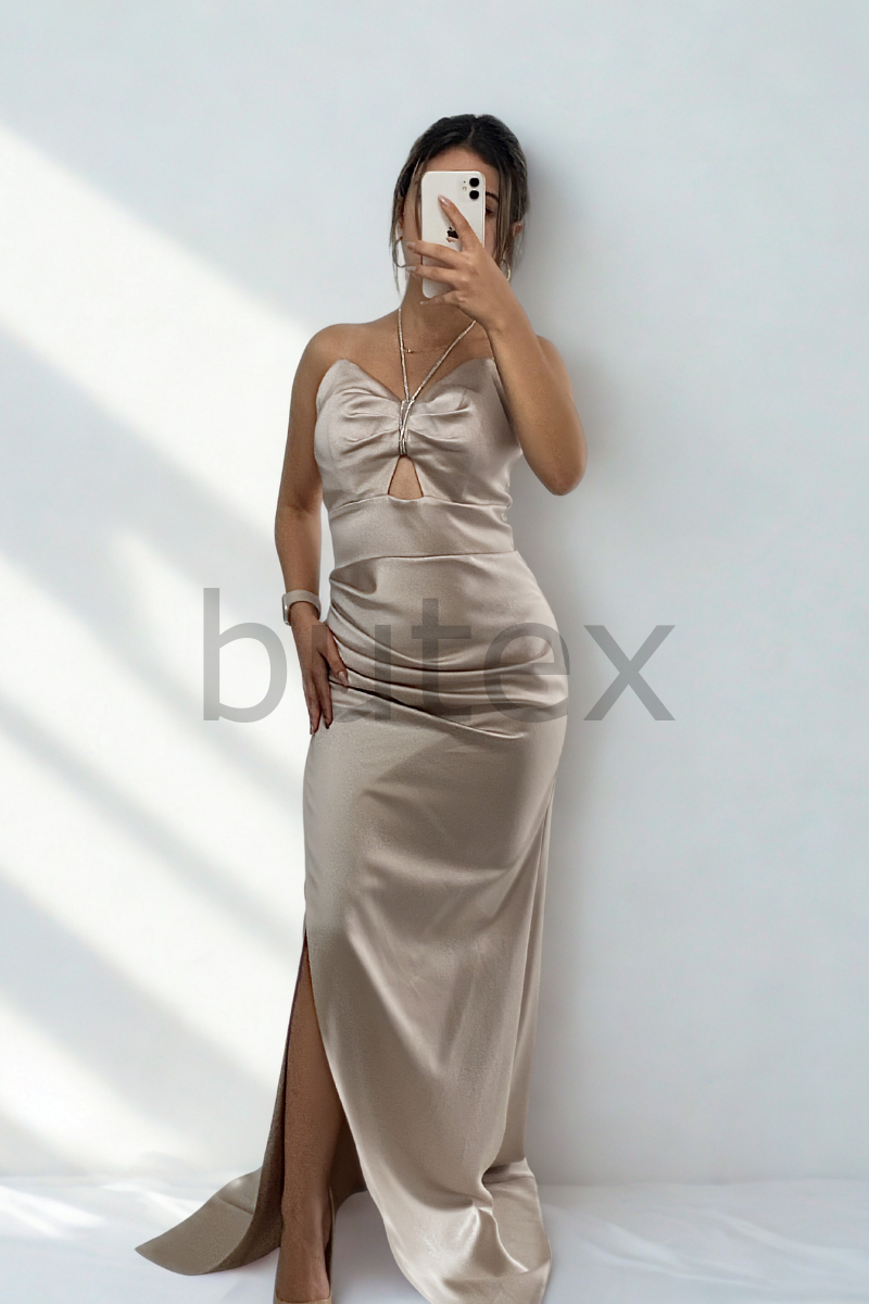 Boyundan Bağlamalı Saten Abiye Elbise 1138btx