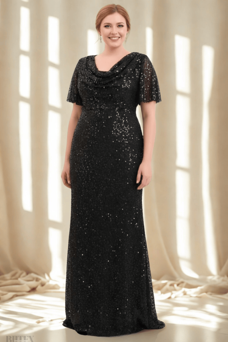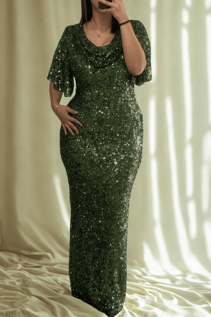 Büyük Beden Likralı Payet Uzun Abiye Elbise 1139btx