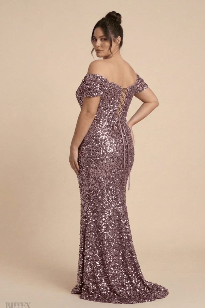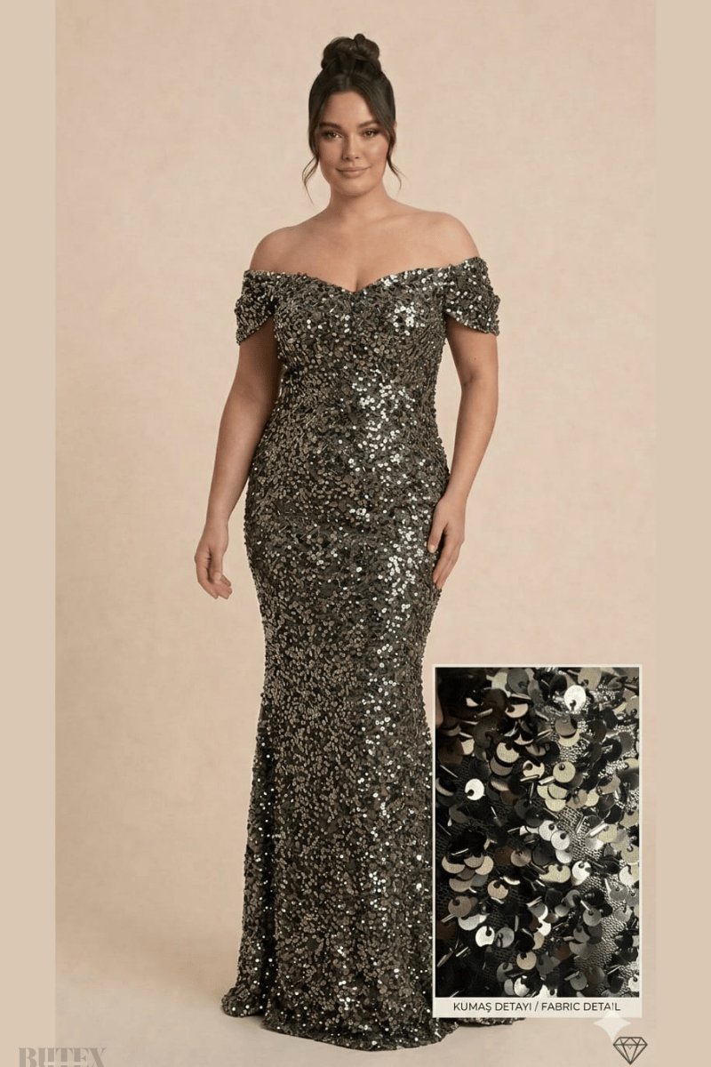 Büyük Beden Payet Arka Bağcıklı Abiye Elbise 1154btx
