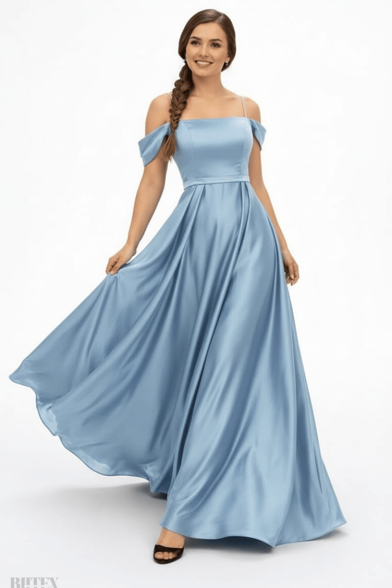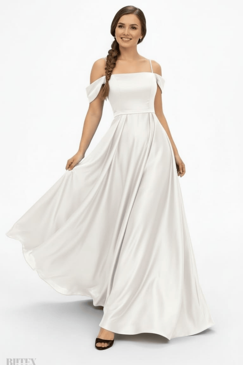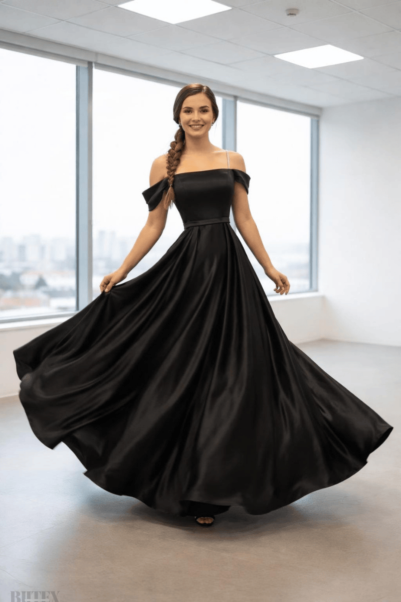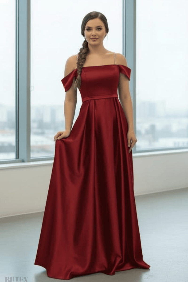Büyük beden saten abiye elbise, parlak taş detaylı omuz askılarıyla zarif bir görünüme sahiptir. Belden oturan kesimi sayesinde şıklığı ve rahatlığı bir arada sunar. Genç büyük beden kadınların özel davetlerde tercih edebileceği sade ve modern bir modeldir.