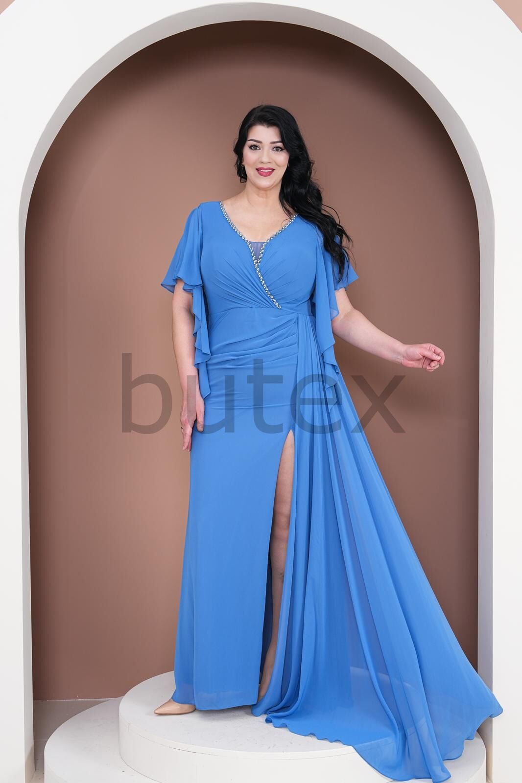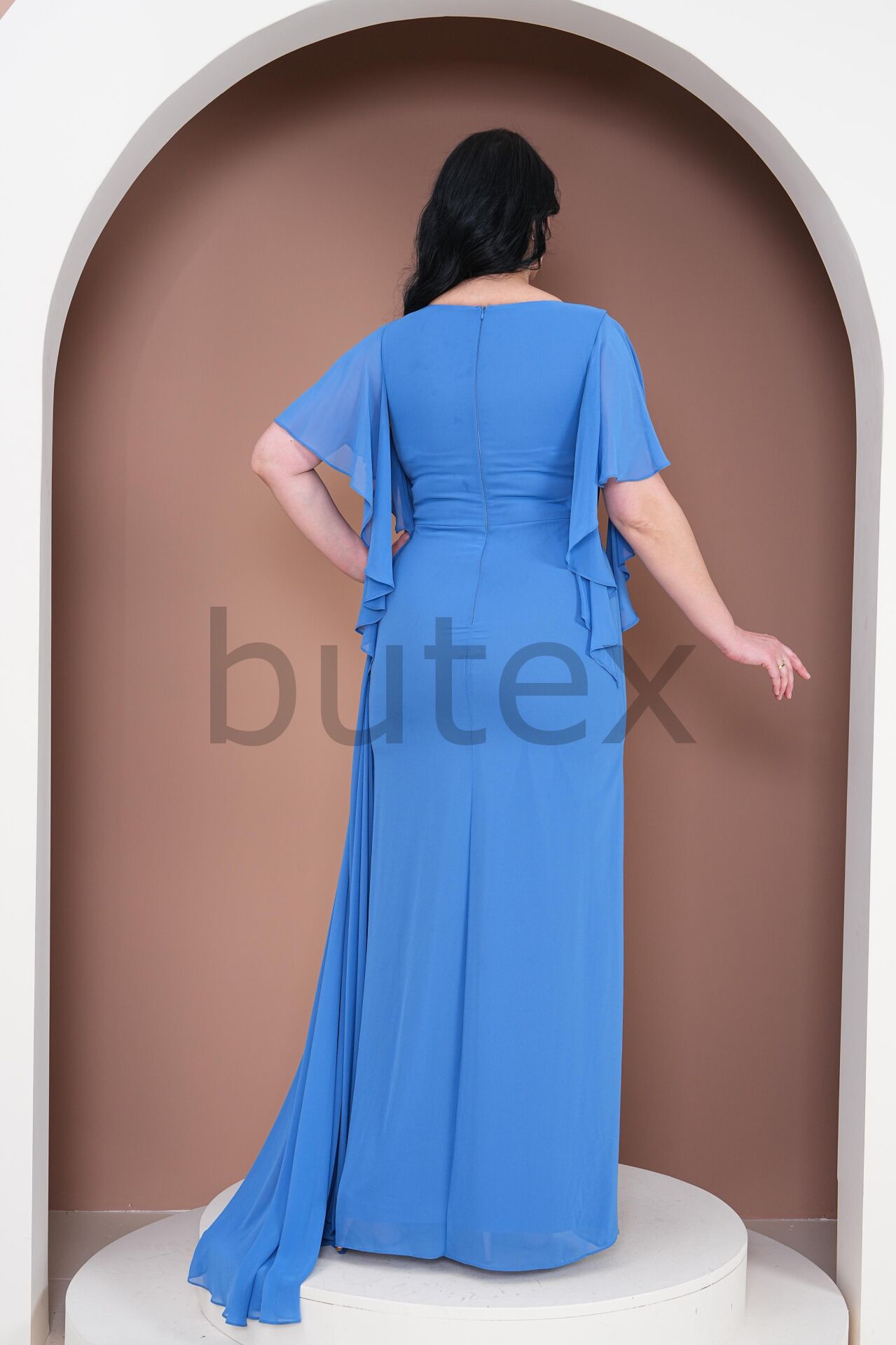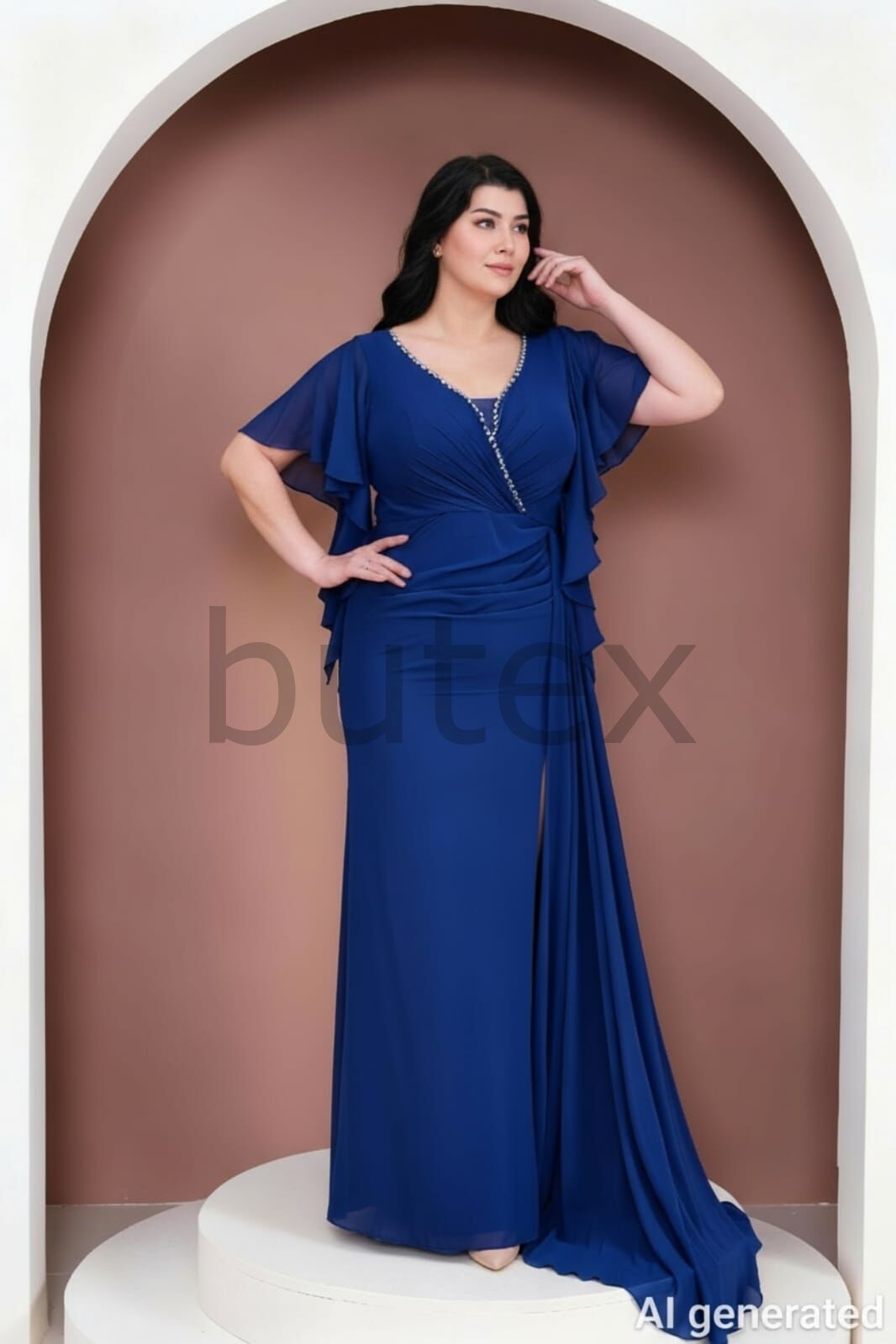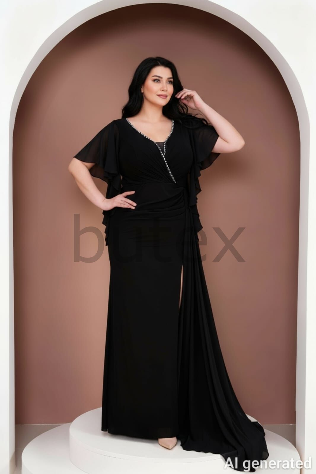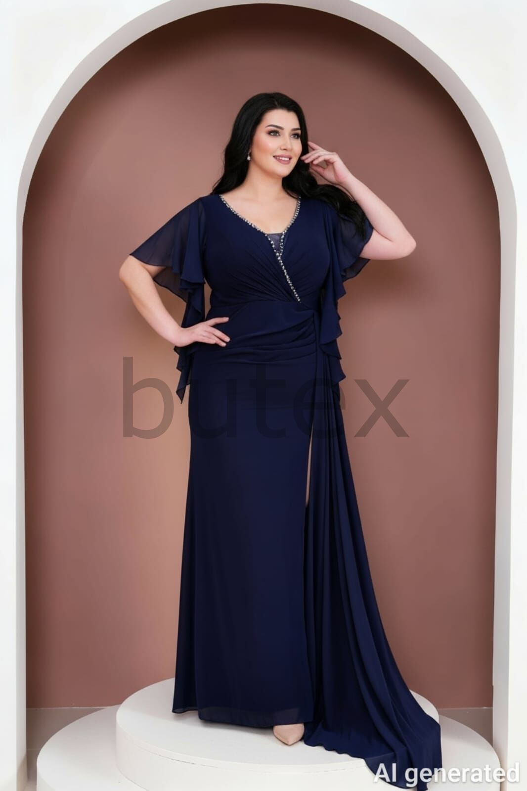 Büyük Beden Şifon Kumaş Yırtmaç Detaylı Abiye Elbise 3974btx