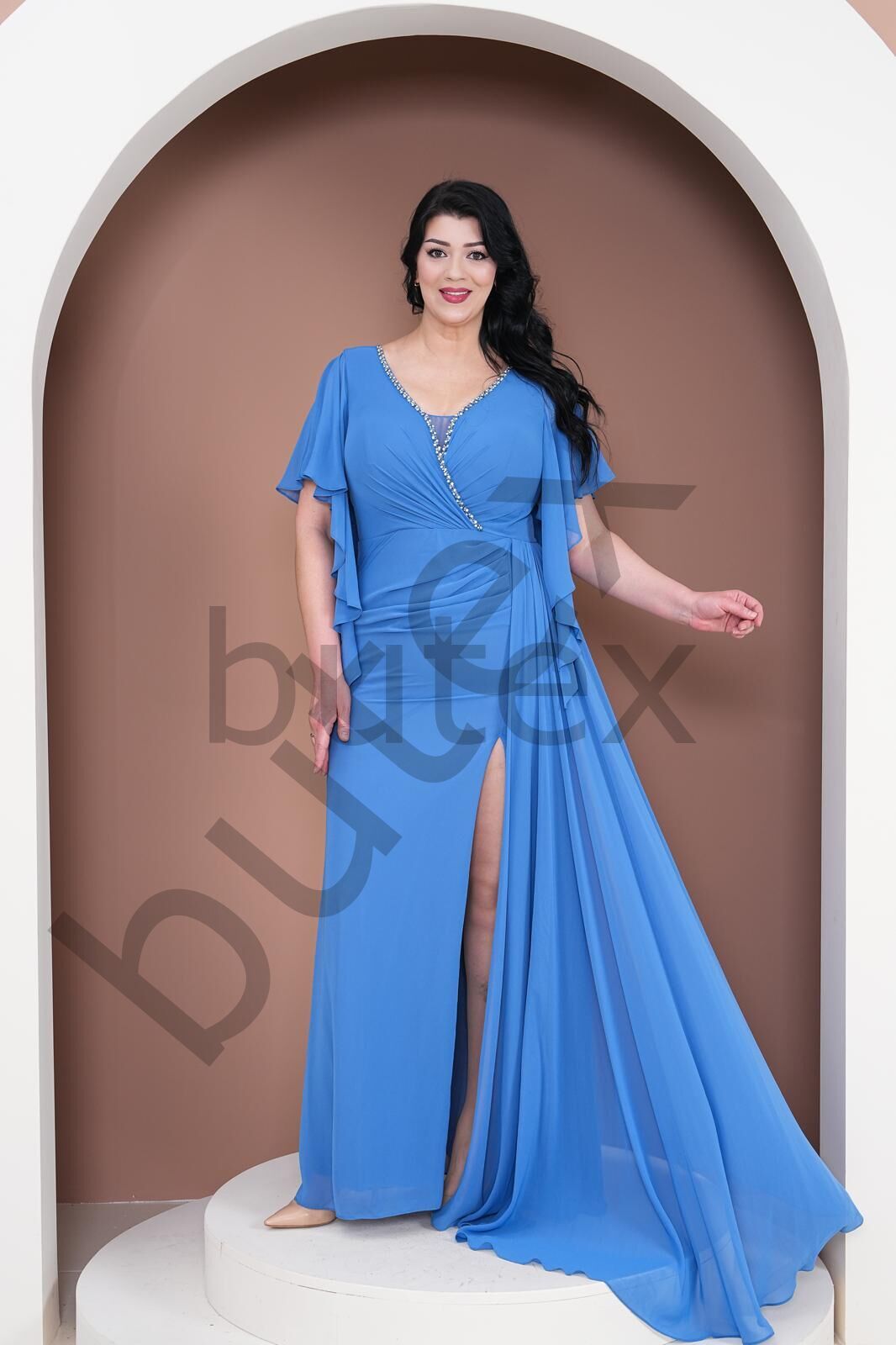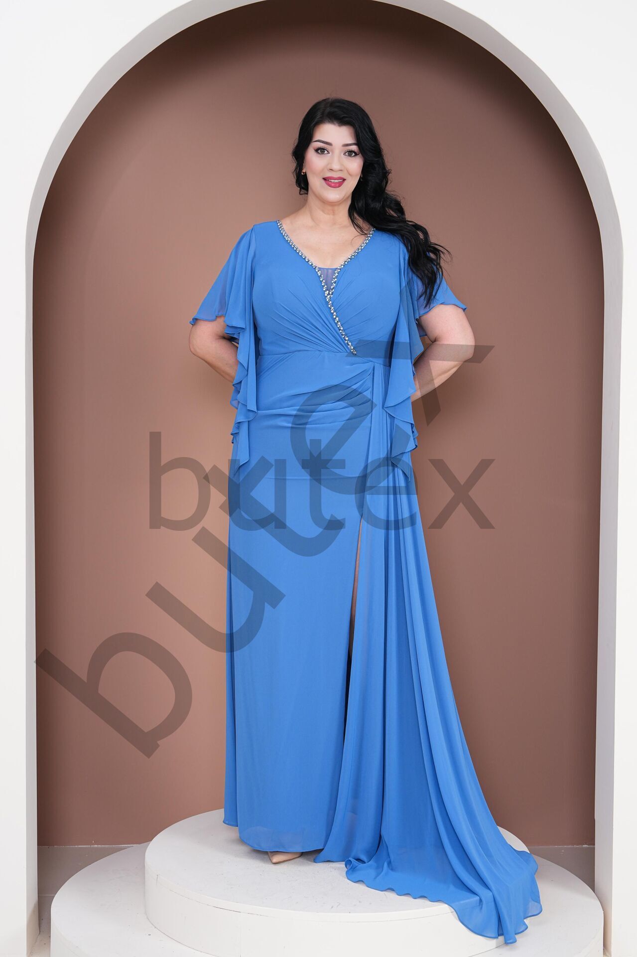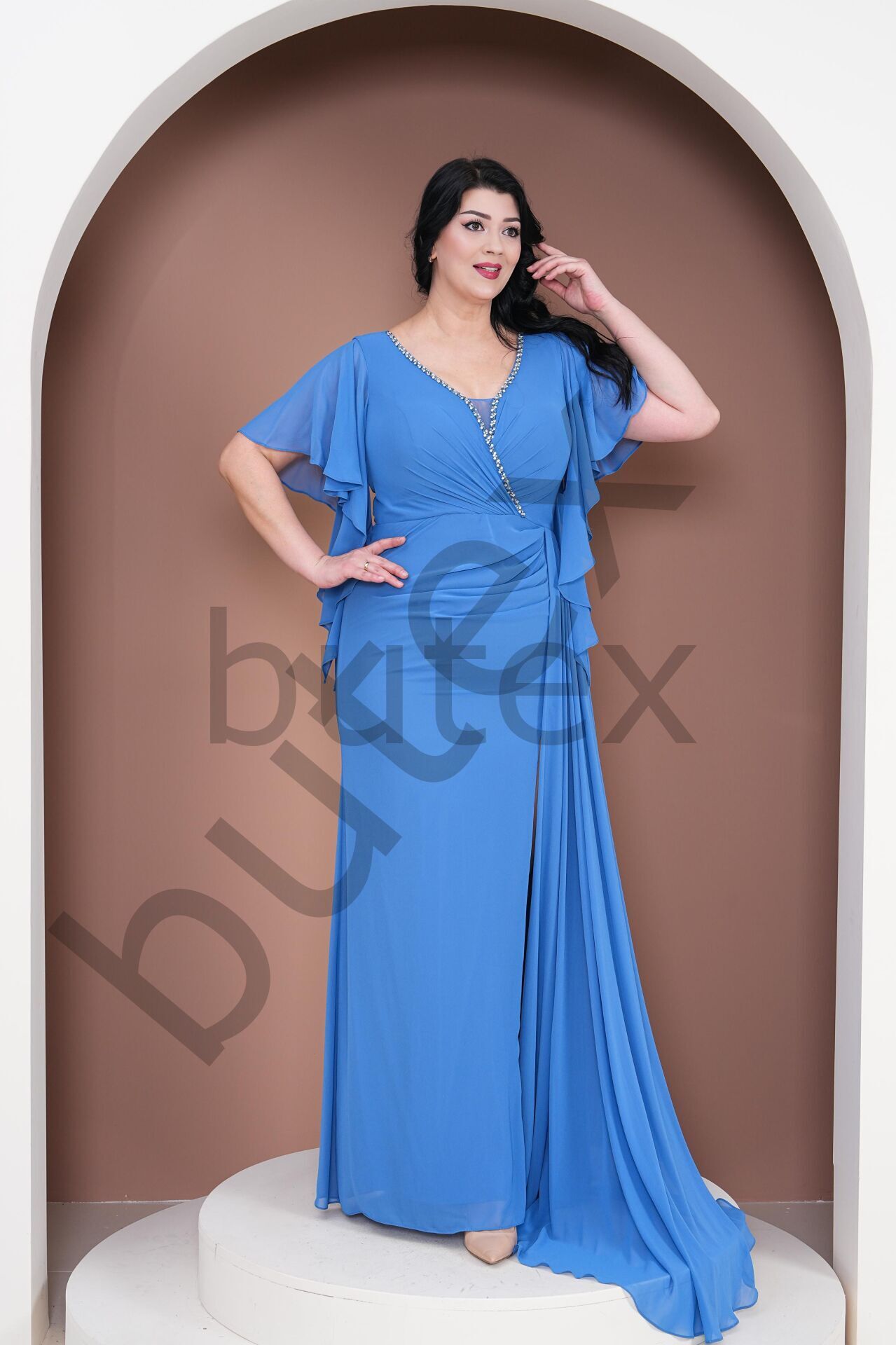 V yaka, taş detaylı yaka kenarları ve volanlı kollarıyla şıklığı yakalayan şifon büyük beden abiye elbise, derin yırtmaç ve dekolte tasarımıyla göz alıcı bir duruş sunar. Konforlu ve zarif bir seçim olarak özel davetlerde öne çıkmak isteyenlerin favorisi BEDEN TABLOSU İÇİN TIKLAYINIZ