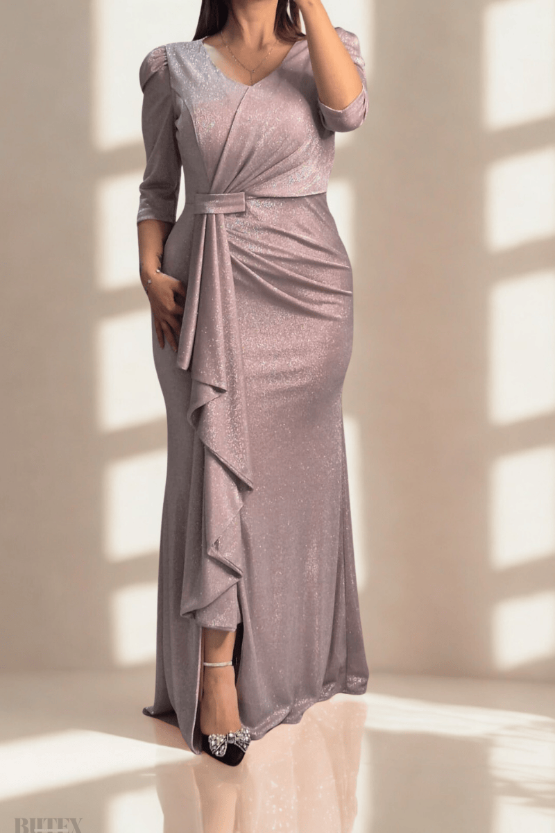 Büyük Beden Simli Kumaş Likralı Abiye Elbise 3035btx