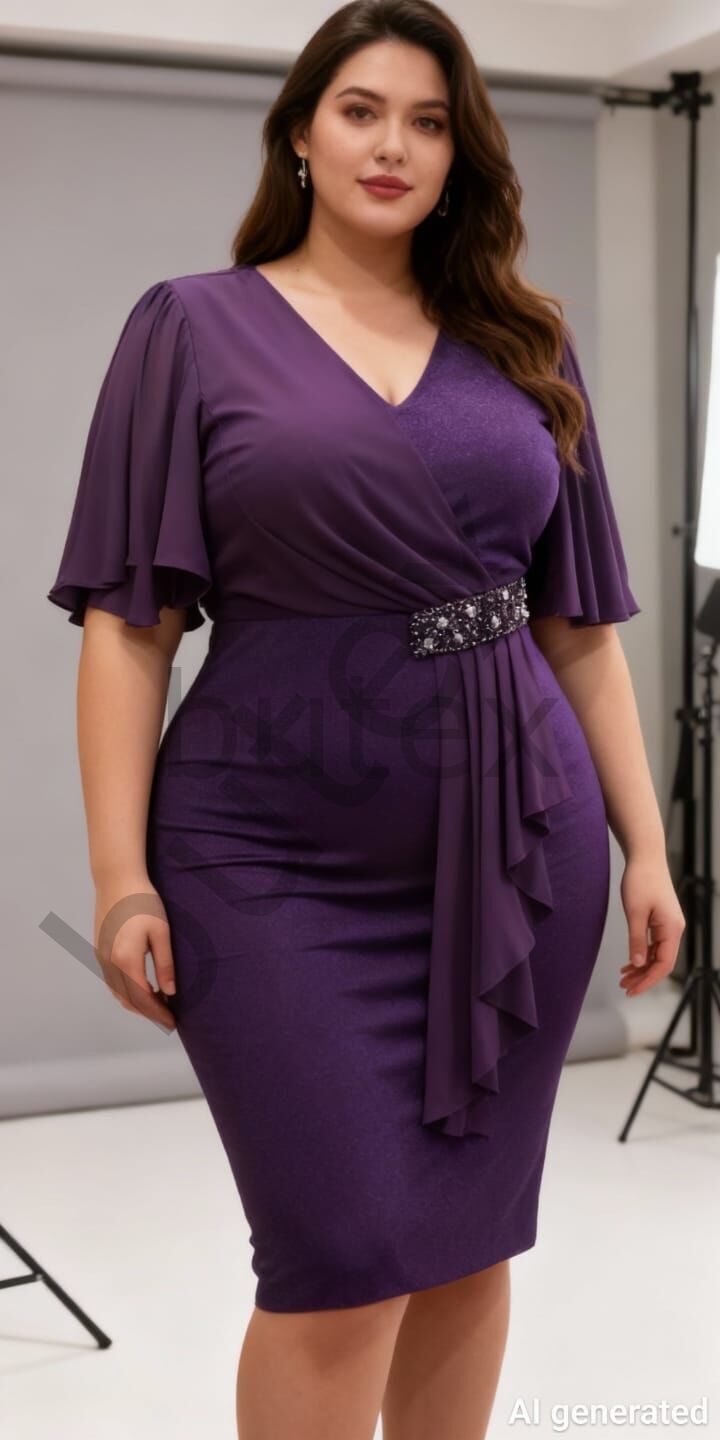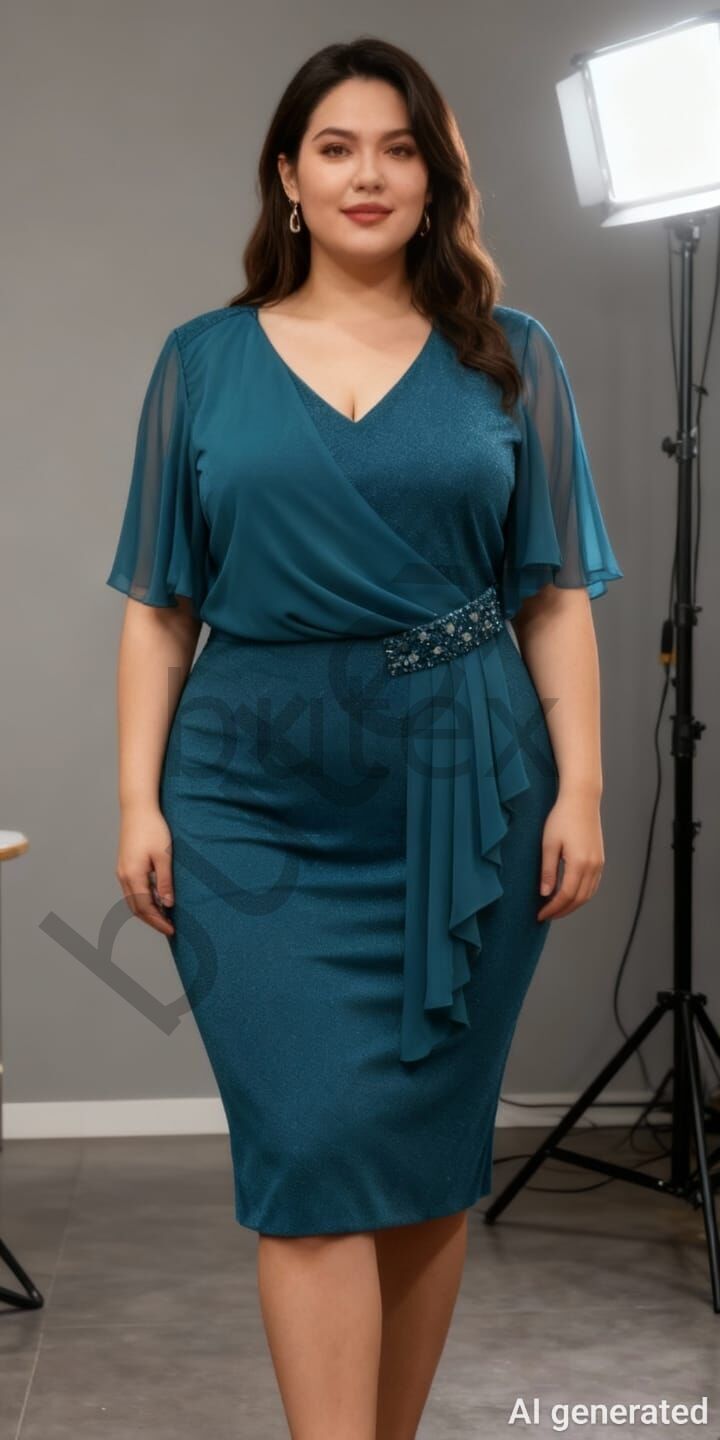 Zümrüt yeşilinin büyüsü bu elbiseyle üzerinizde! Vücuda oturan zarif kesimi, taş detaylı kemeri ve dökümlü şifon kollarıyla büyük beden şıklığını bir üst seviyeye taşıyor. Geniş beden yelpazesi ve renk seçenekleri esnek kumaşı ile size rahatlık vadeden Işıltılı kumaşıyla ışığı üzerinize çekin Davetlerde fark yaratın Konforlu ve zarif duruş bir arada BEDEN TABLOSU İÇİN TIKLAYINIZ