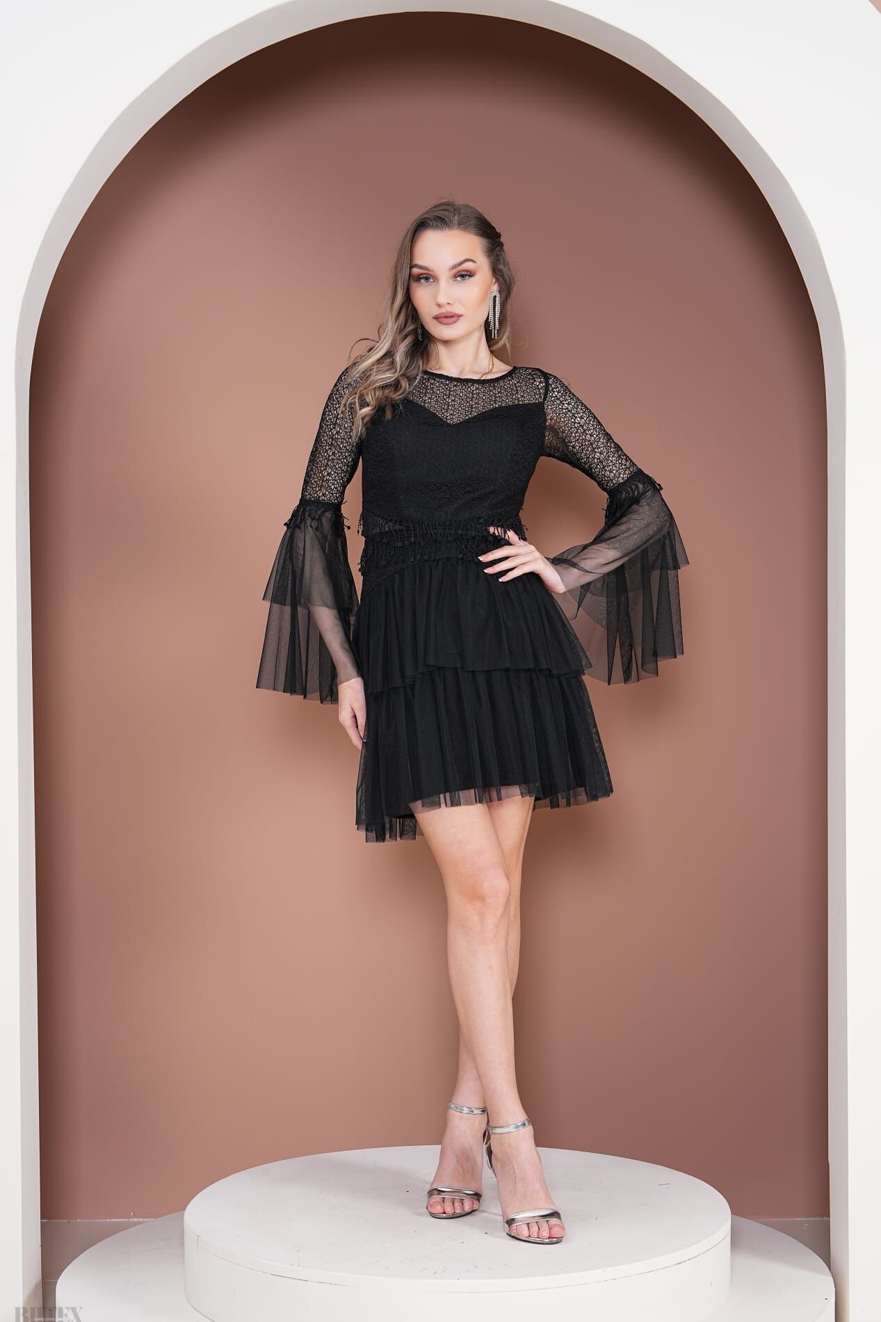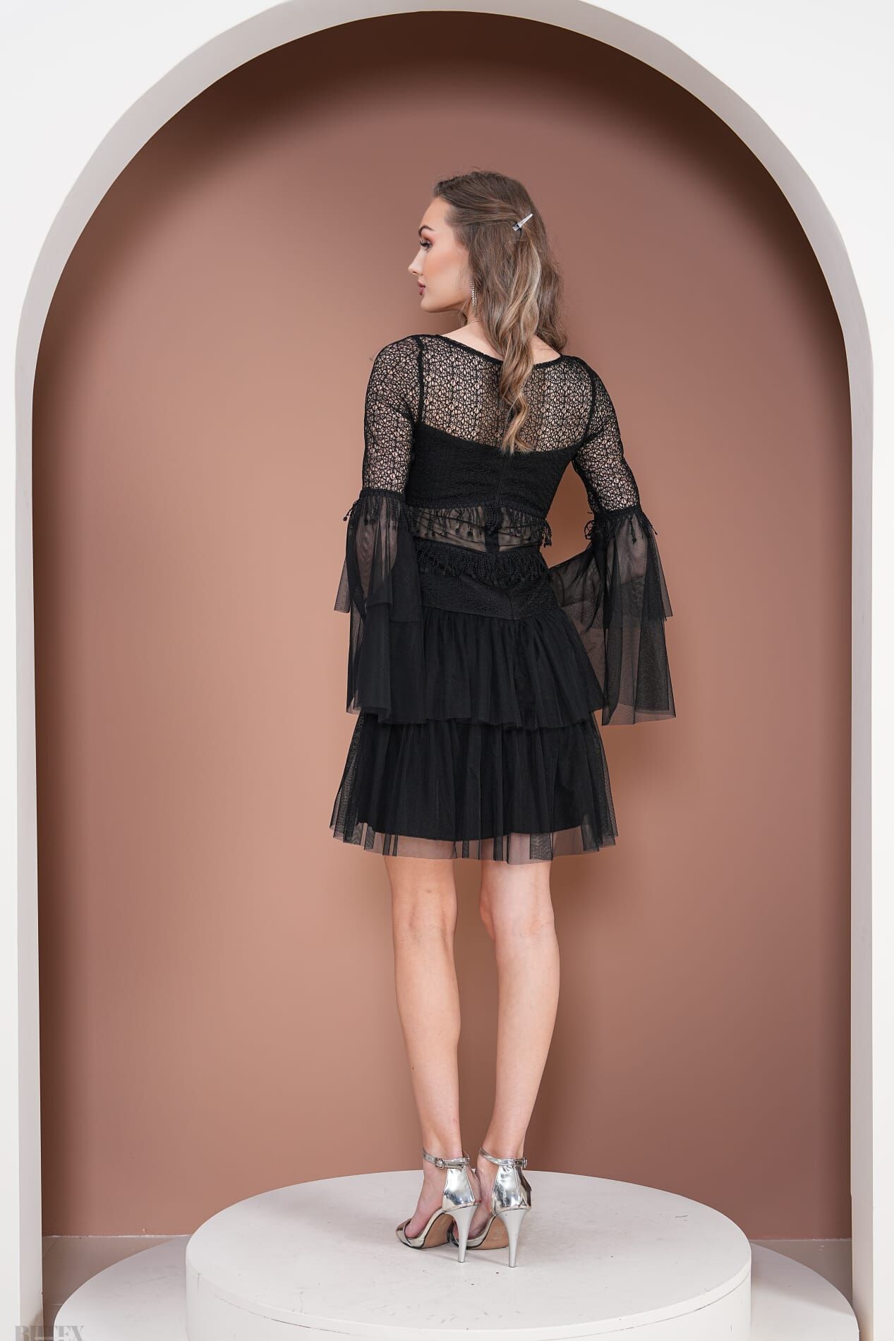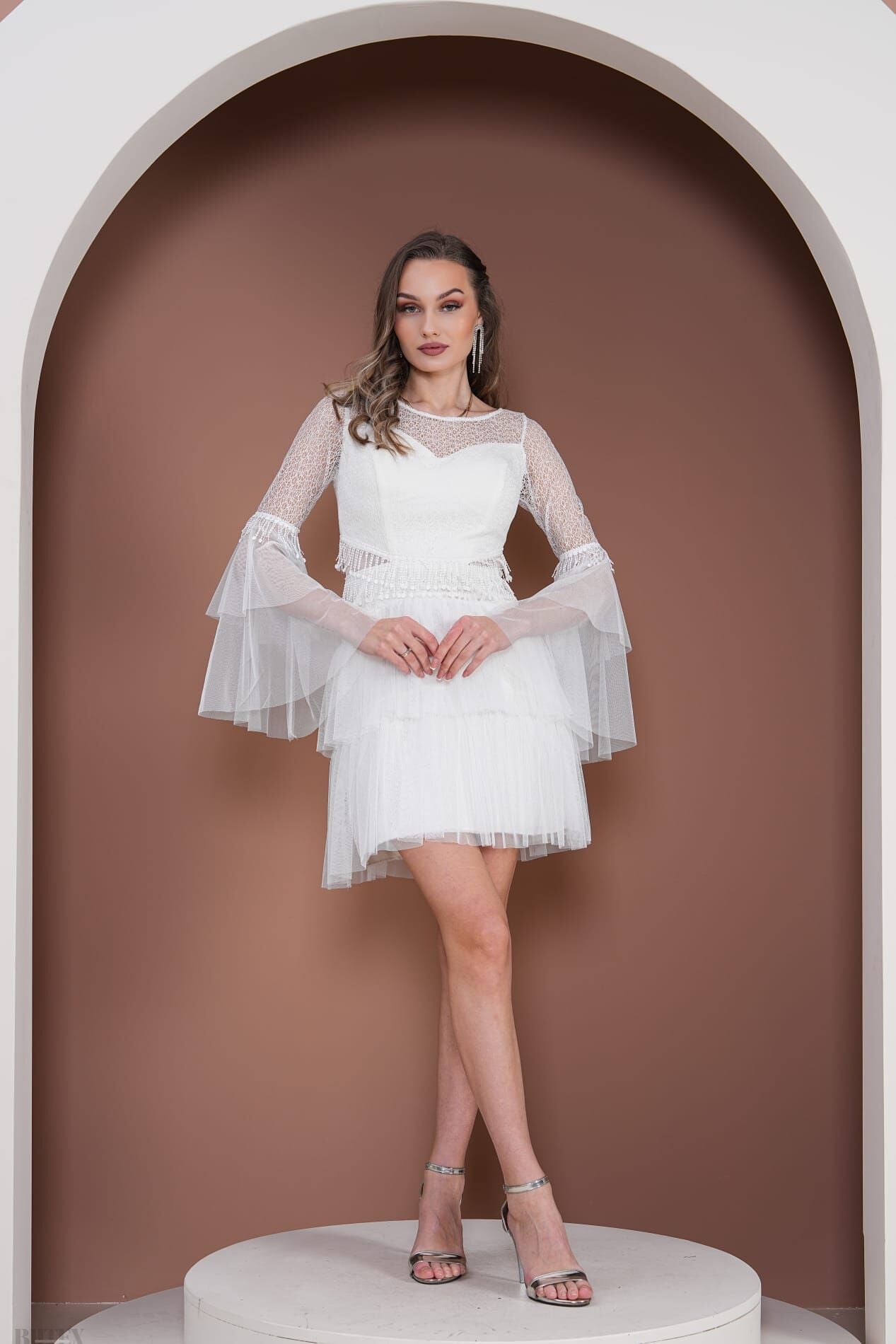 Eteği KatKat Tül detaylı Kısa Çıtır Dantel Abiye Elbise 3796btx