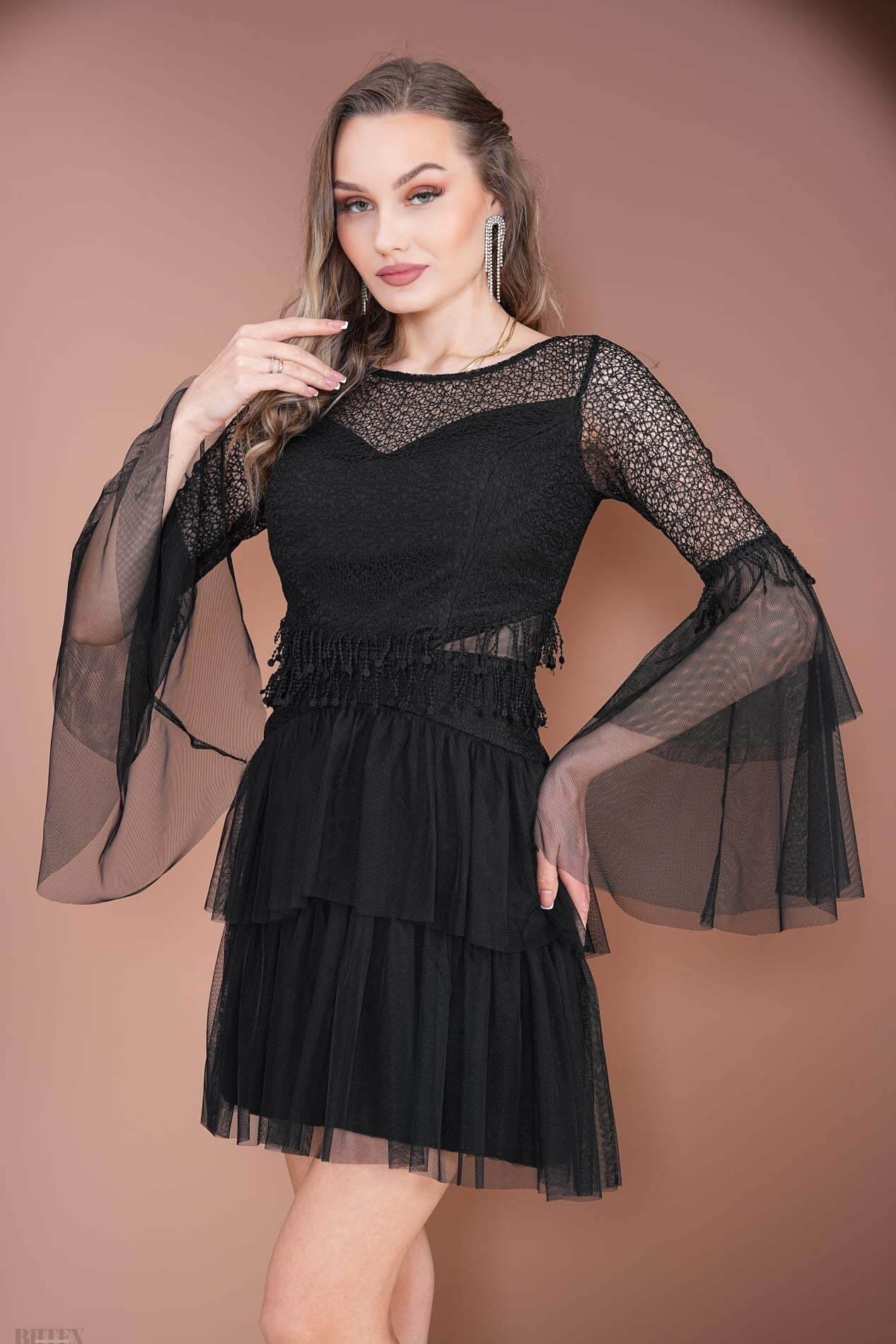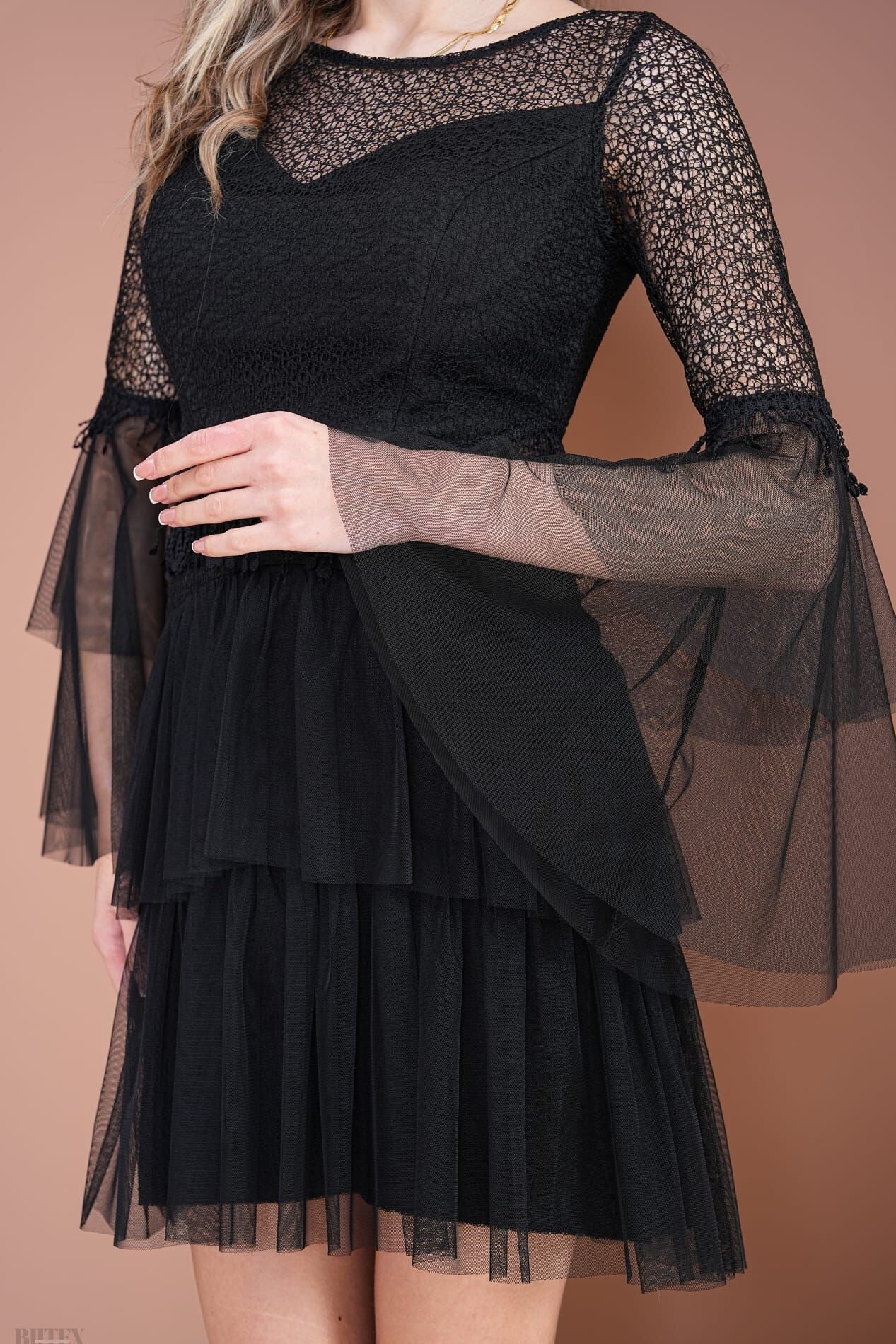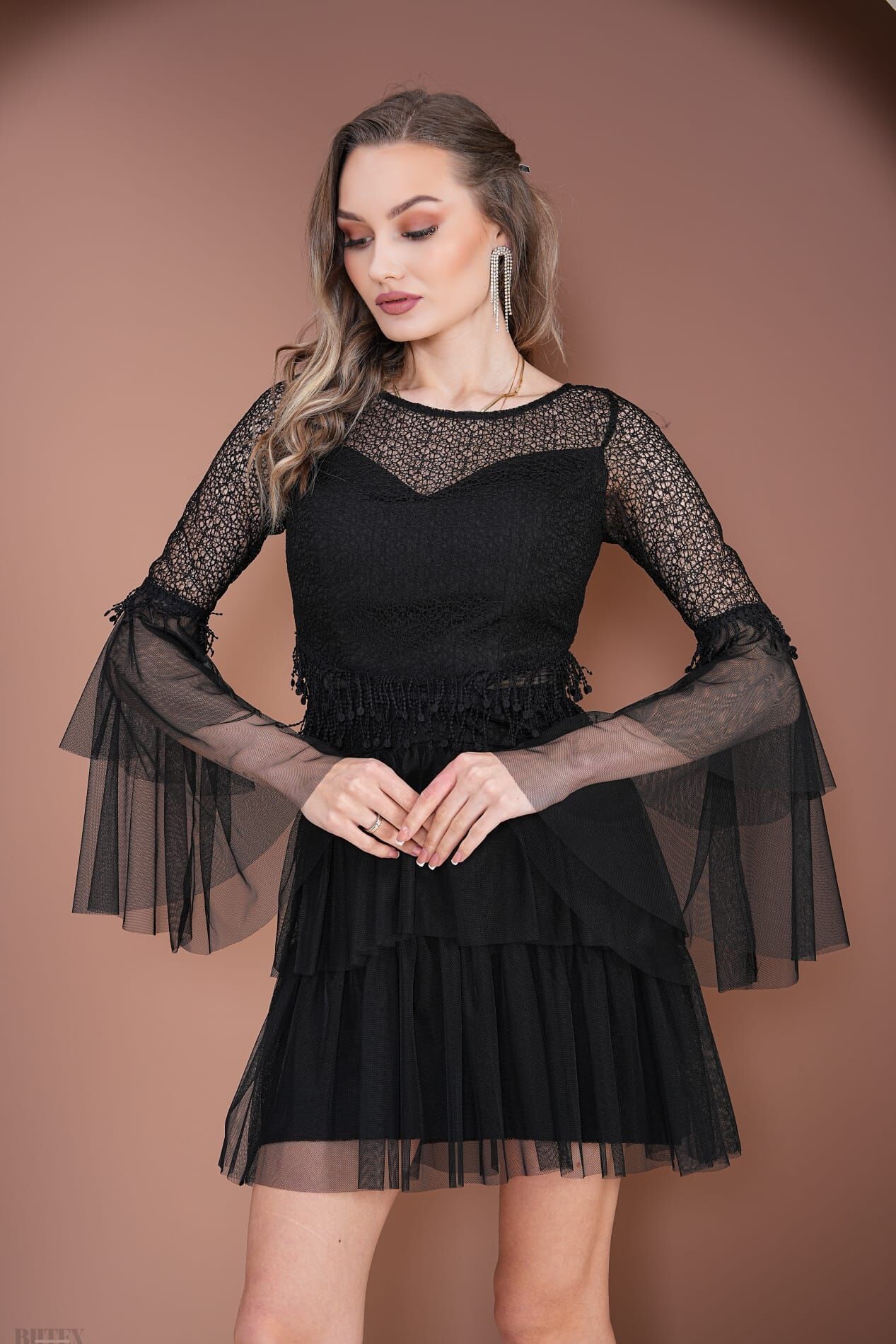 Eteği KatKat Tül detaylı Kısa Çıtır Dantel Abiye Elbise 3796btx