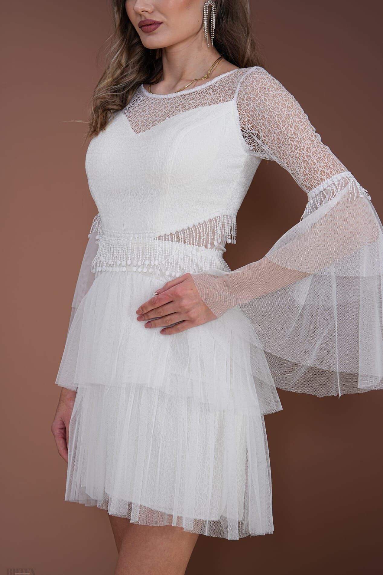 Bu zarif dantel tül elbise, şıklık ve zarafeti bir araya getiriyor. Transparan tül detayları ve dantel işlemeleriyle göz kamaştırıcı bir görünüm sunuyor. Özel davetlerde, düğünlerde veya mezuniyet törenlerinde benzersiz bir stil için ideal bir seçim. Bedeninize uygun olması için ölçülerinizi paylaşabilir veya bir beden büyük tercih edebilirsiniz.BEDEN TABLOSU İÇİN TIKLAYINIZ