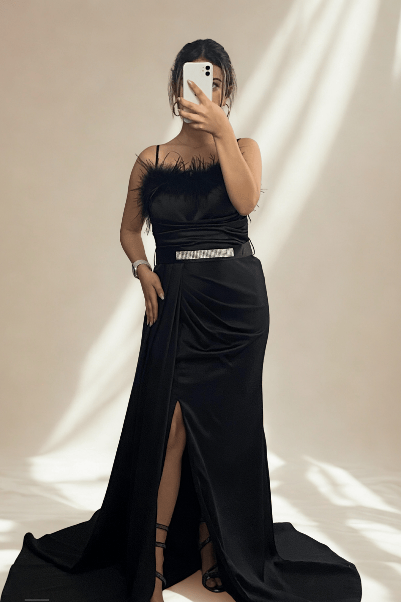 Saten kumaştan üretilen bu şık abiye elbise, göğüs kısmındaki özenle tasarlanmış otriş detayıyla göz alıcı bir görünüm sunar. Beli kemerli, ön bacak yırtmacı ve ayarlanabilir askıları ile konfor ve zarafeti bir arada yaşatır. Özel davetler için ideal bir tercih. BEDEN TABLOSU İÇİN TIKLAYINIZ