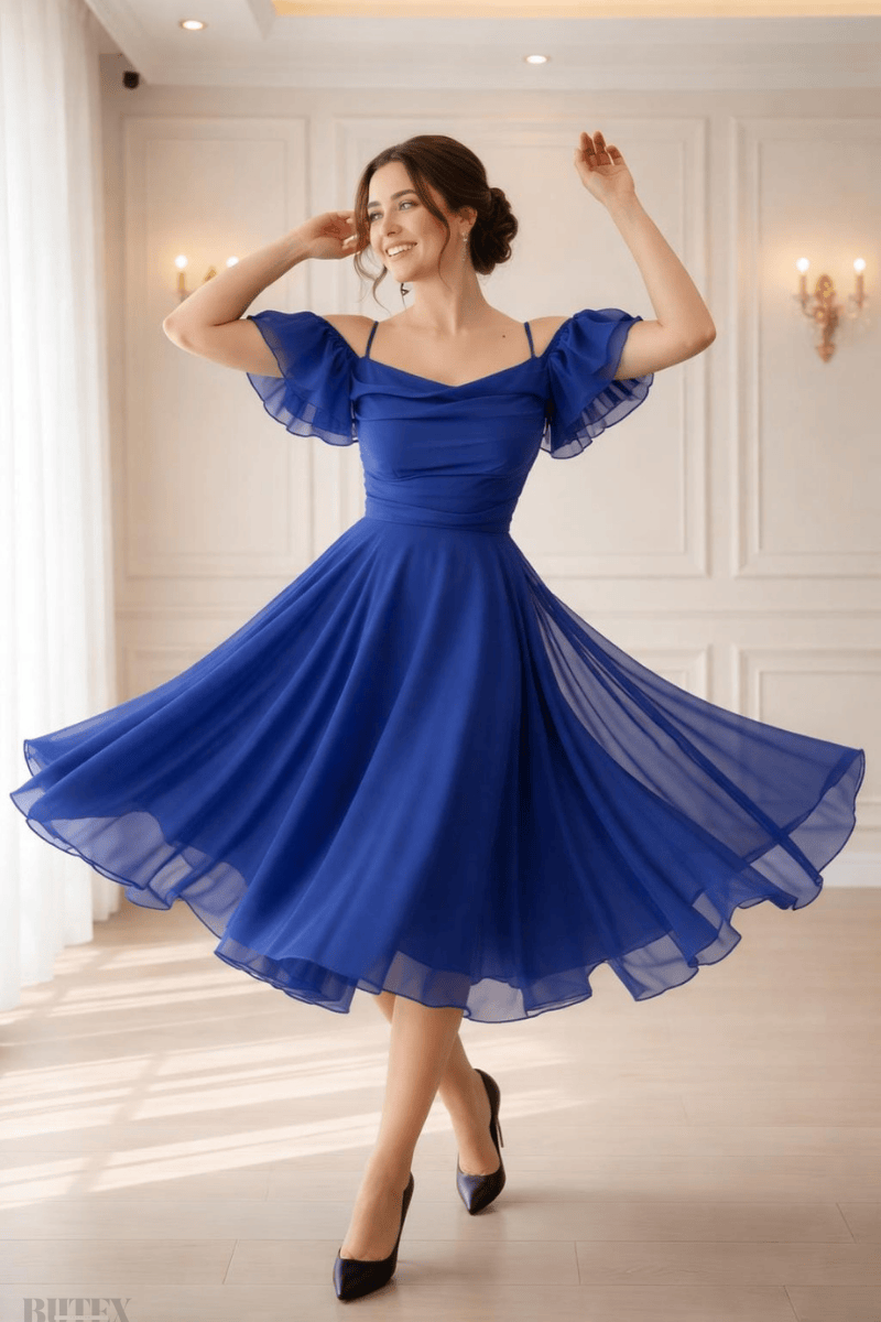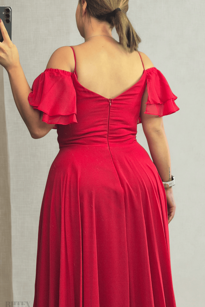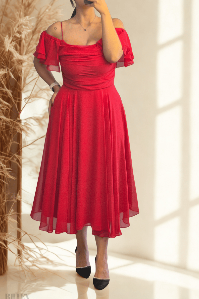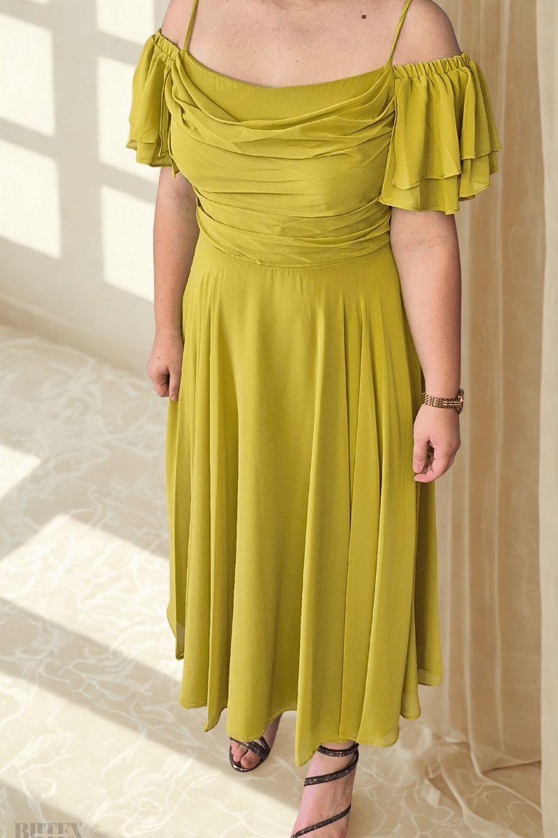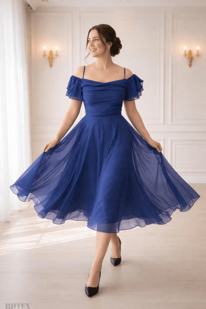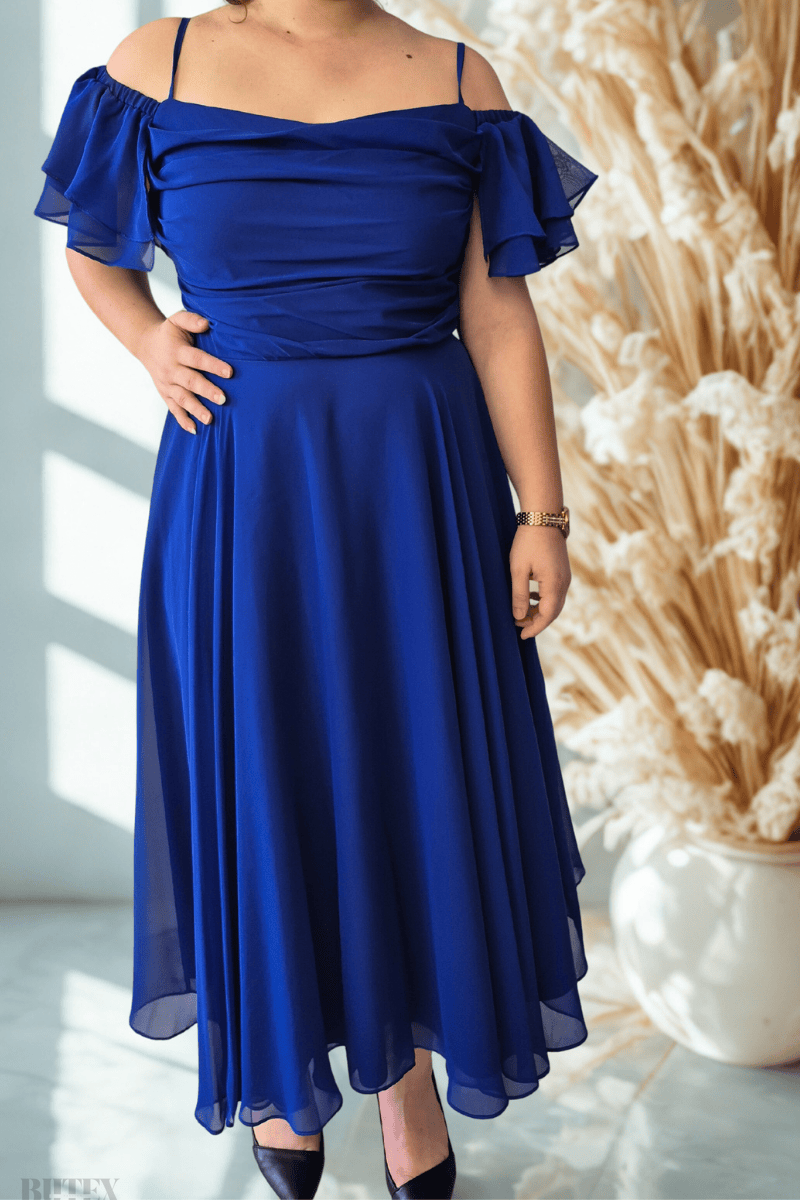 Hafif ve zarif şifon kumaştan tasarlanan bu elbise, büyük bedenlere özel lastikli dökük kolları ve ip askılarıyla rahatlık sunar. Kloş etek kısmı midi boyda olup, şıklığı ve konforu aynı anda sağlamak isteyenler için ideal bir tercihtir. Kalıbı dar olduğu için beden konusunda bizimle iletişime geçebilirsiniz .BEDEN TABLOSU İÇİN TIKLAYINIZ