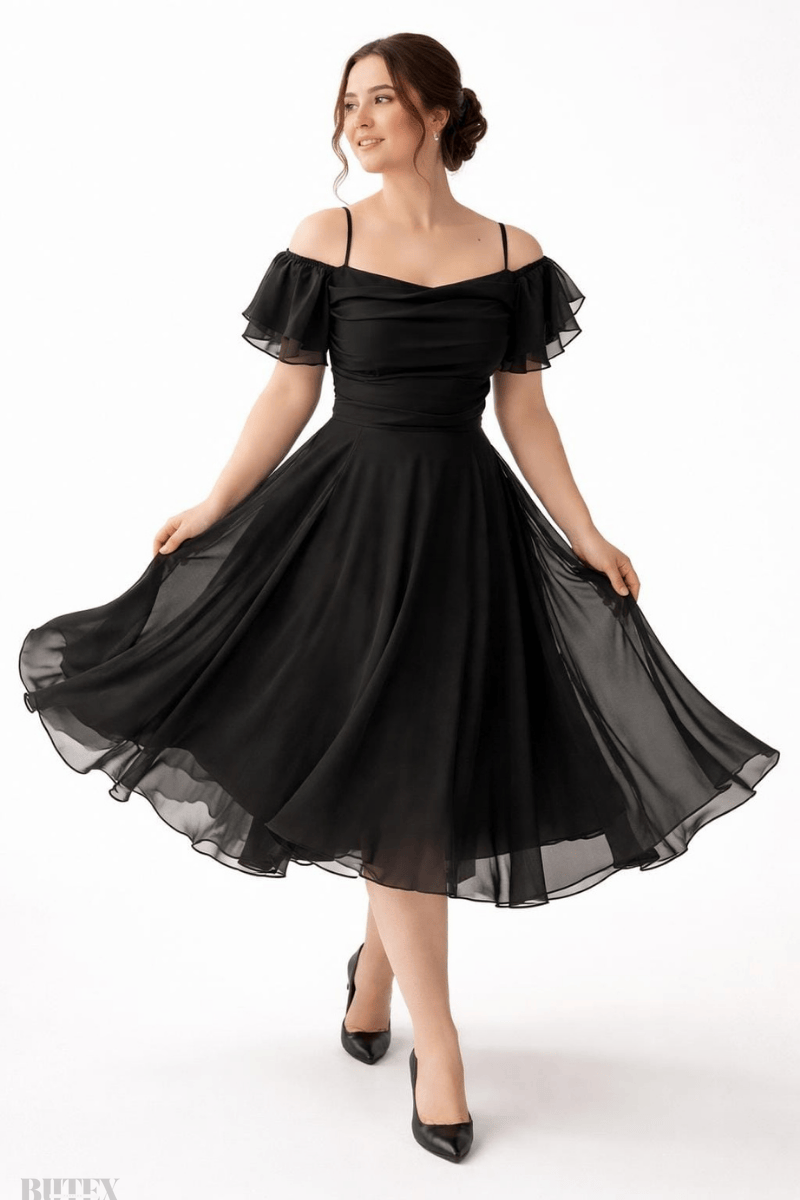 Hafif ve zarif şifon kumaştan tasarlanan bu elbise, büyük bedenlere özel lastikli dökük kolları ve ip askılarıyla rahatlık sunar. Kloş etek kısmı midi boyda olup, şıklığı ve konforu aynı anda sağlamak isteyenler için ideal bir tercihtir. Kalıbı dar olduğu için beden konusunda bizimle iletişime geçebilirsiniz .BEDEN TABLOSU İÇİN TIKLAYINIZ