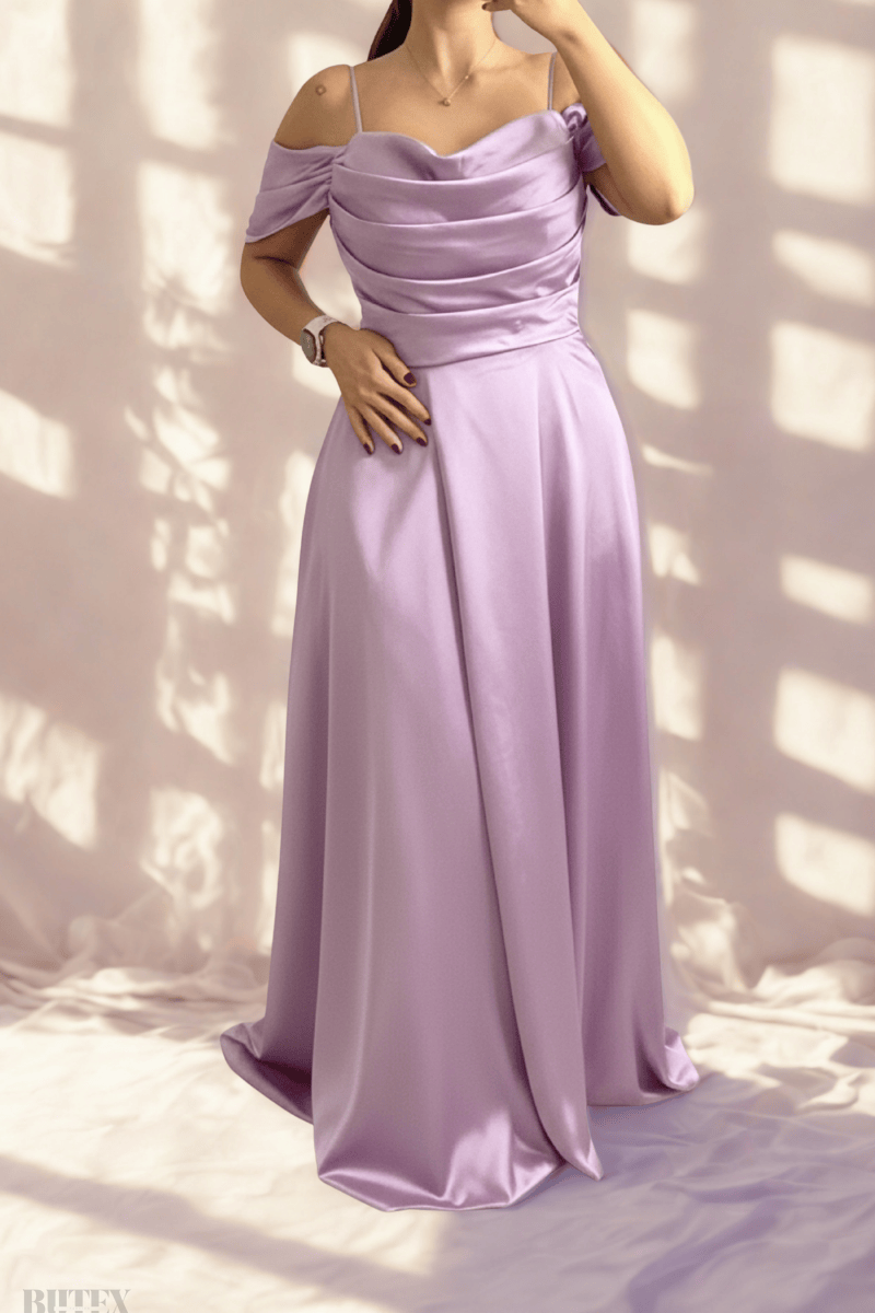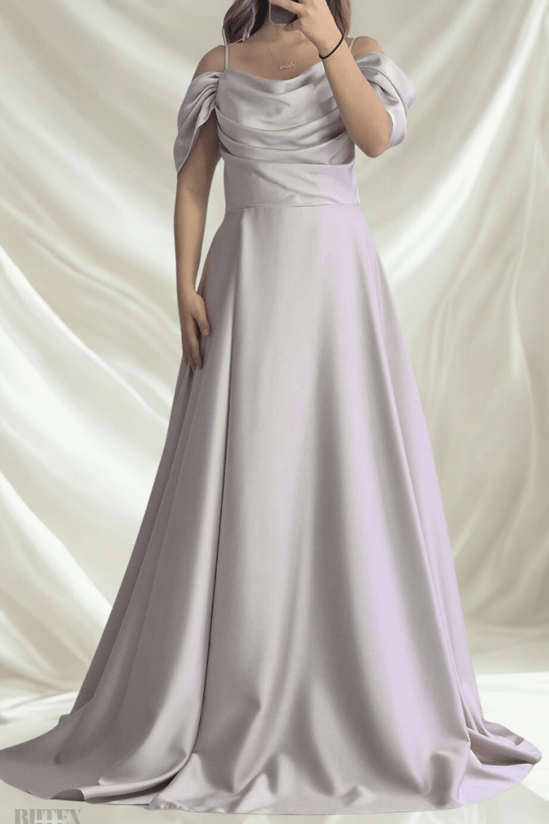 Ipeksi dokusuyla saten abiye elbise, ip askılı kolları ve omuzdan dökülen detaylarla zarafet katıyor. Drapeli beden kısmı ve kloş etek kombini şıklığı tamamlıyor. Dizdeki kapalı yırtmaç ve iç astar, rahat hareket imkanı sunuyor. Özel davetler için ideal seçim.BEDEN TABLOSU İÇİN TIKLAYINIZ