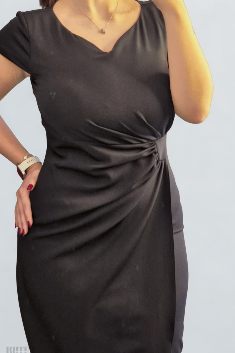 Kısa Kol Eteği Kapaklı Krep Kısa Elbise 34796btx