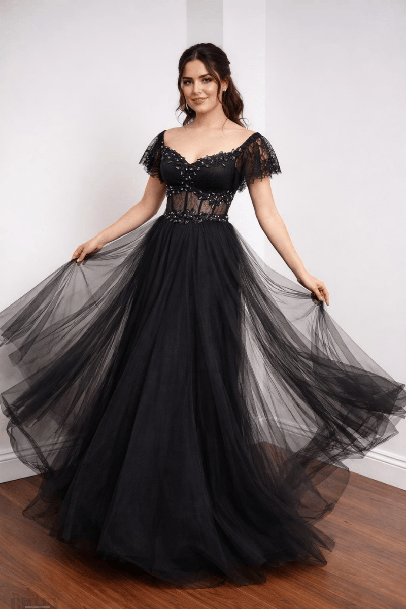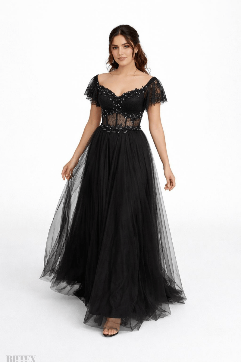 Tül abiye elbise, zarif ve hafif yapısıyla özel günlerde şıklığı ön plana çıkarır. Transparan tül detaylar ve ince işlemelerle süslenen model, bel ve sırt kısmındaki transparan dantel üzerine boncuk işlemeleriyle özgünlük sunar. Volanlı kollar, farklı kullanımla estetik katmaktadır.