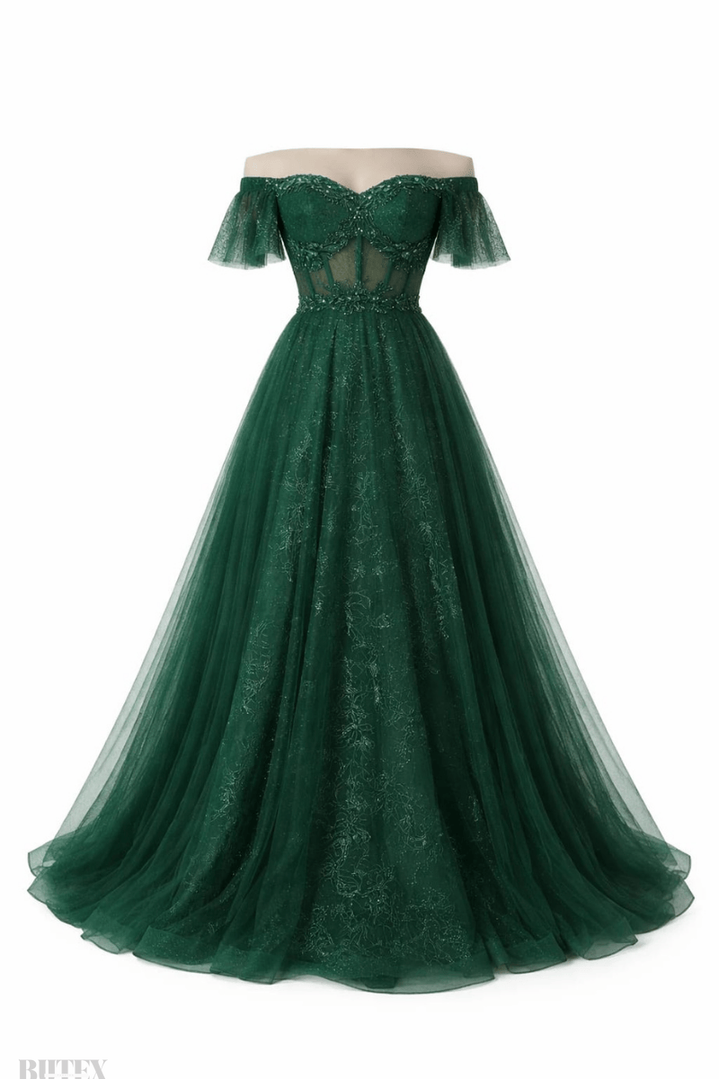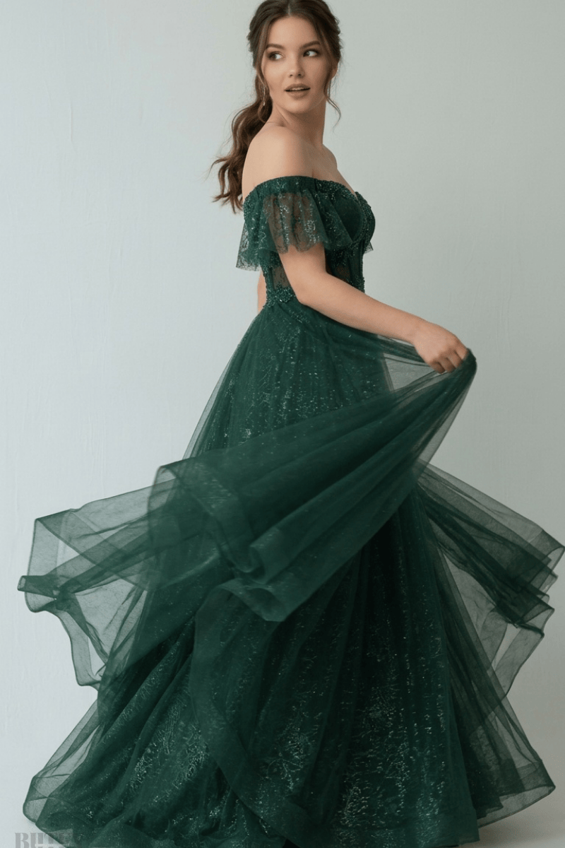 Kolları Volanlı Tül Abiye Elbise 2110btx