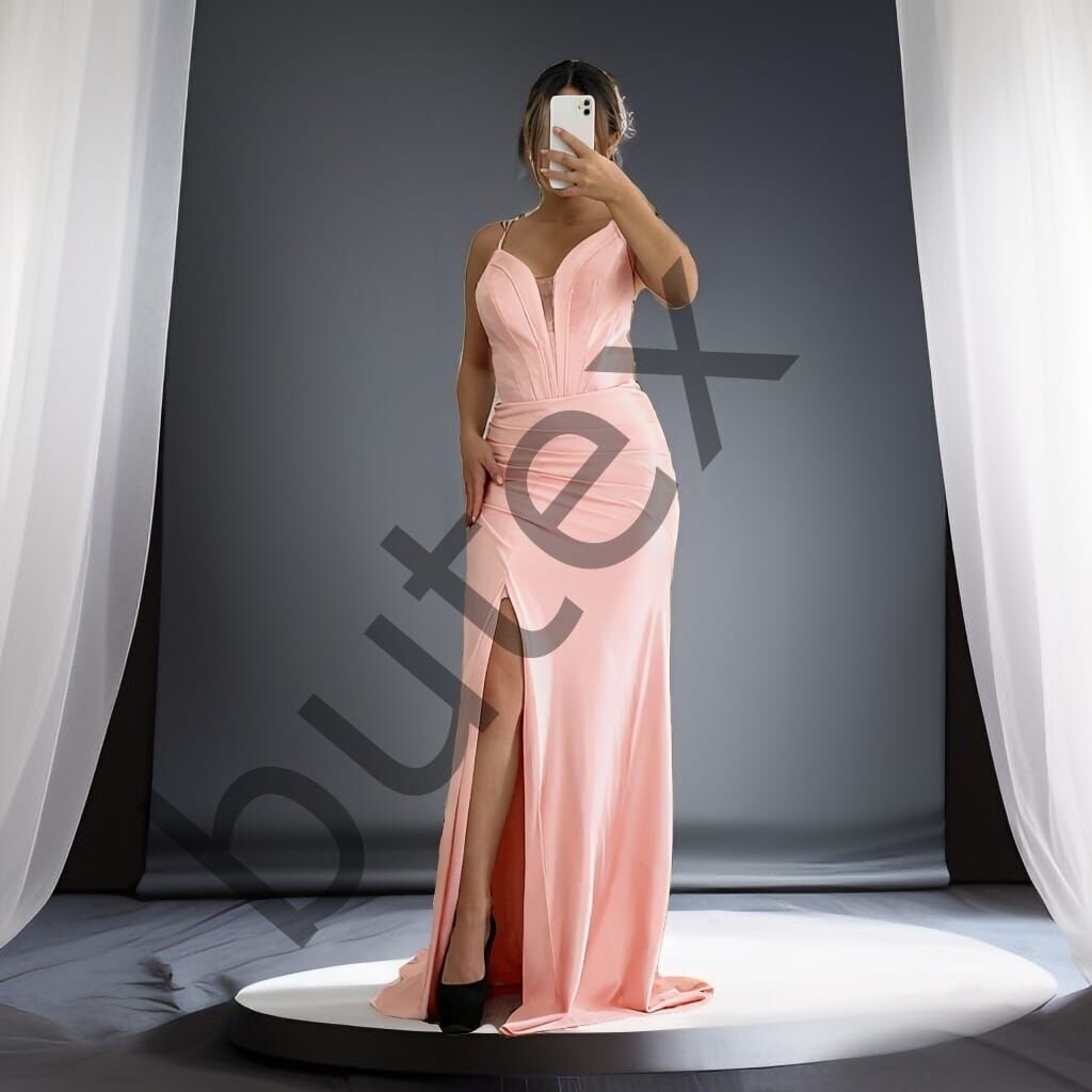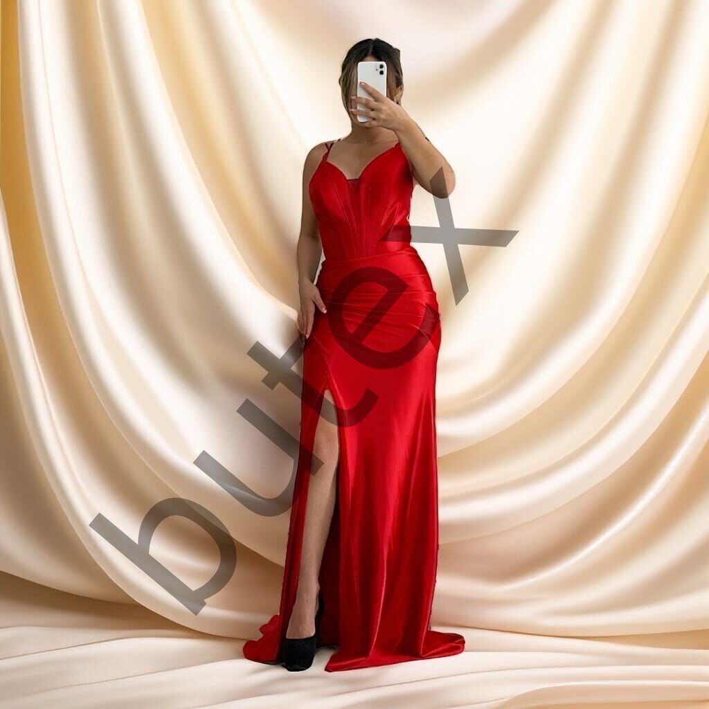 Beli korse balenli, önden yırtmaçlı bu uzun abiye elbise, sırtı bağcıklı ve içi mini astarlıdır. Vücudu sarıp toparlayan sıkı parlak örme saten kumaştan üretilmiştir. Kalıbı dar olduğu için bir beden büyük tercih edilmesi önerilir; beden tablosundan yardım alabilirsiniz.BEDEN TABLOSU İÇİN TIKLAYINIZ