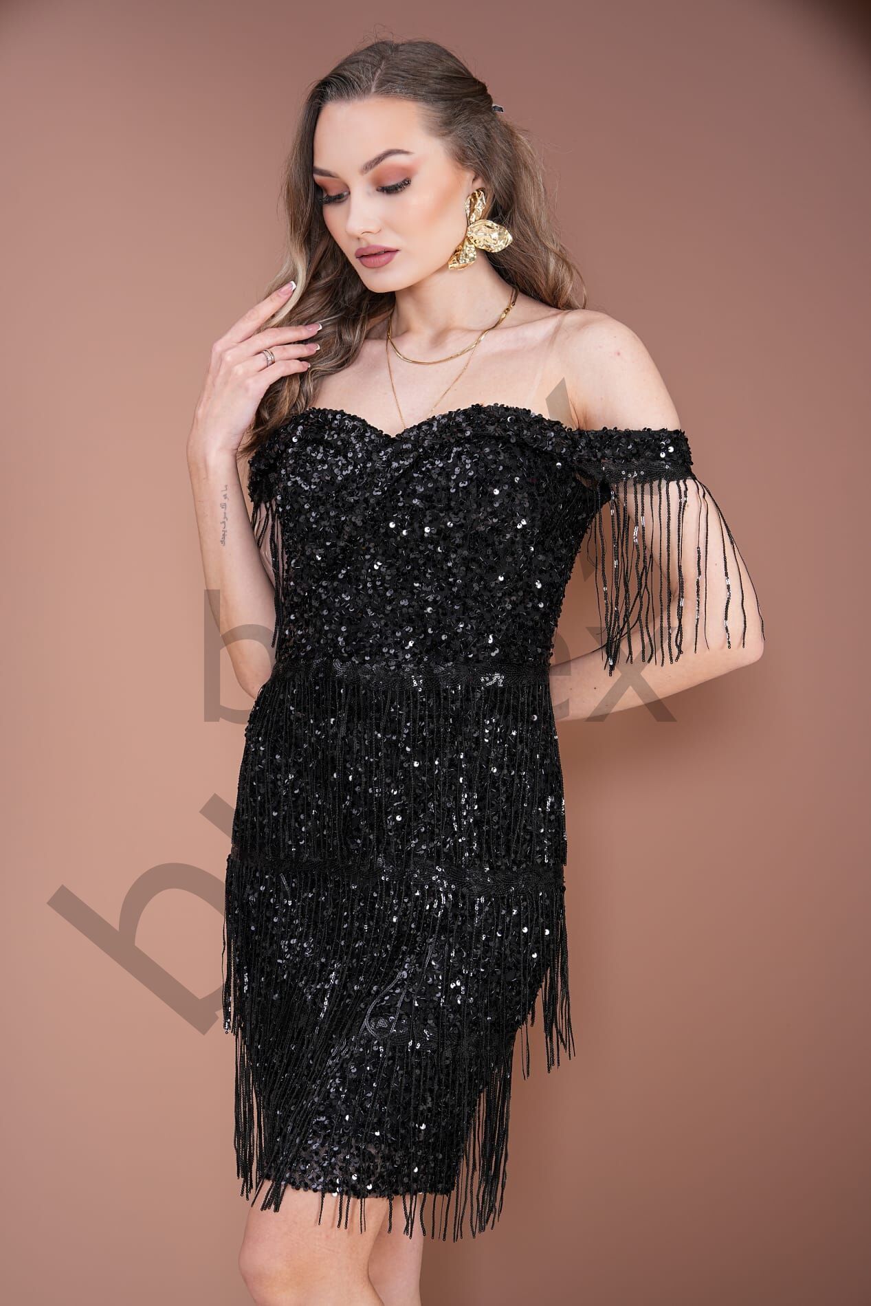 Işıltılı payetlerle süslenmiş, saçak detaylı kısa abiye elbise şıklığı ve enerjiyi buluşturuyor. Özel davetlerde dikkat çekmek isteyenler için tasarlanan bu model, hareketli saçaklarıyla göz alıcı ve dinamik bir görünüm sağlıyor. Modern ve zarif bir tercih.BEDEN TABLOSU İÇİN TIKLAYINIZ