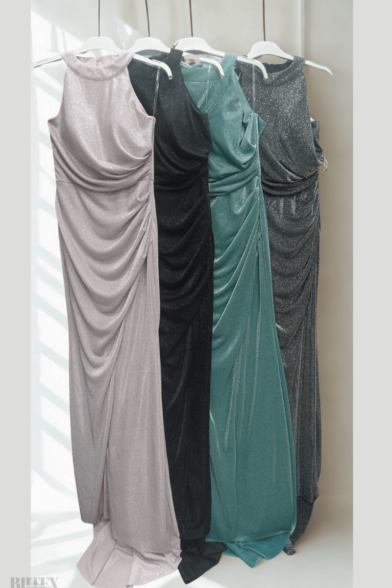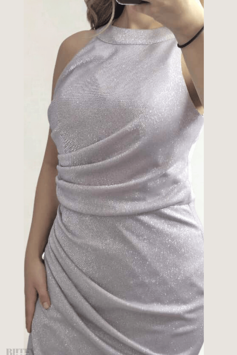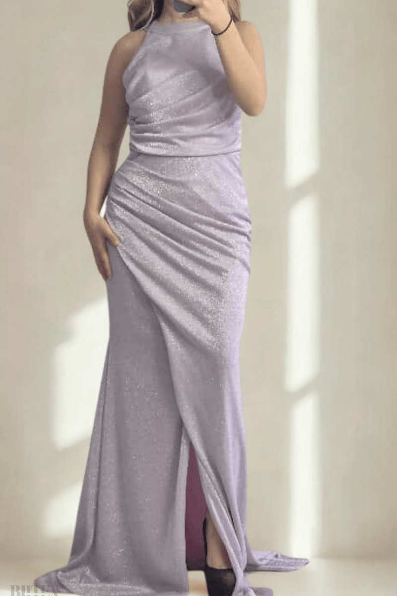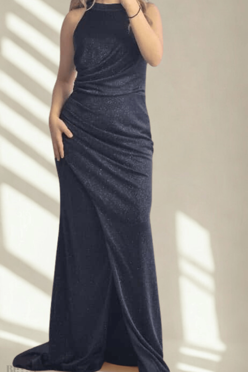 Simli Kumaş Halter Yaka Balık Abiye Elbise 1145btx