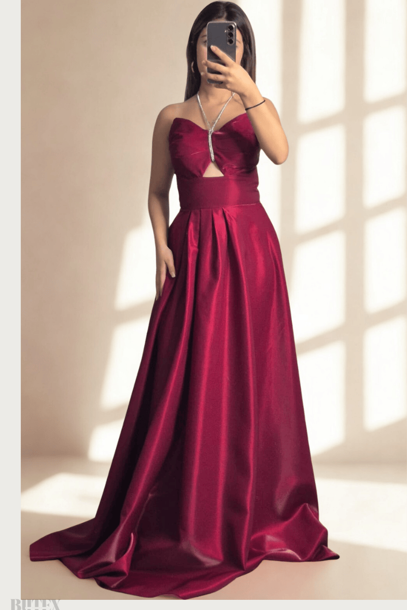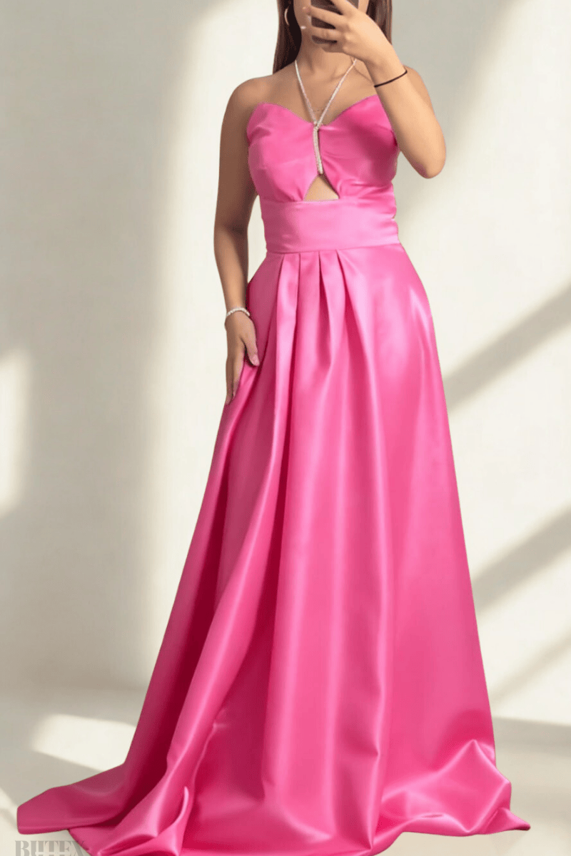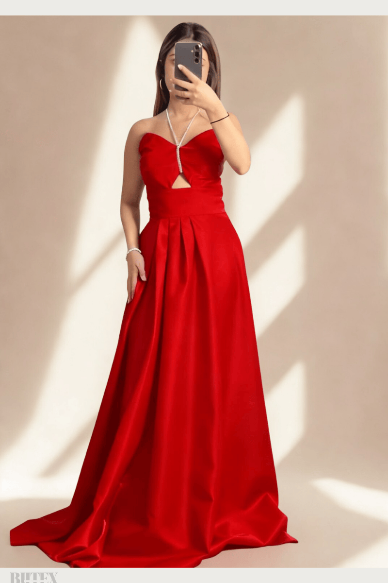 Bu göz alıcı tafta saten kumaştan yapılmış abiye elbise, zarif stili ve şık detayları ile her türlü özel etkinlik için mükemmel bir seçenek. Rahat kalıbı ve göbek dekolteli boyundan bağlamalı tasarımı sayesinde hem şık hem de rahattır. Davetlerde, düğünlerde veya özel davetlerde dikkatleri üzerinize çekecek.BEDEN TABLOSU İÇİN TIKLAYINIZ