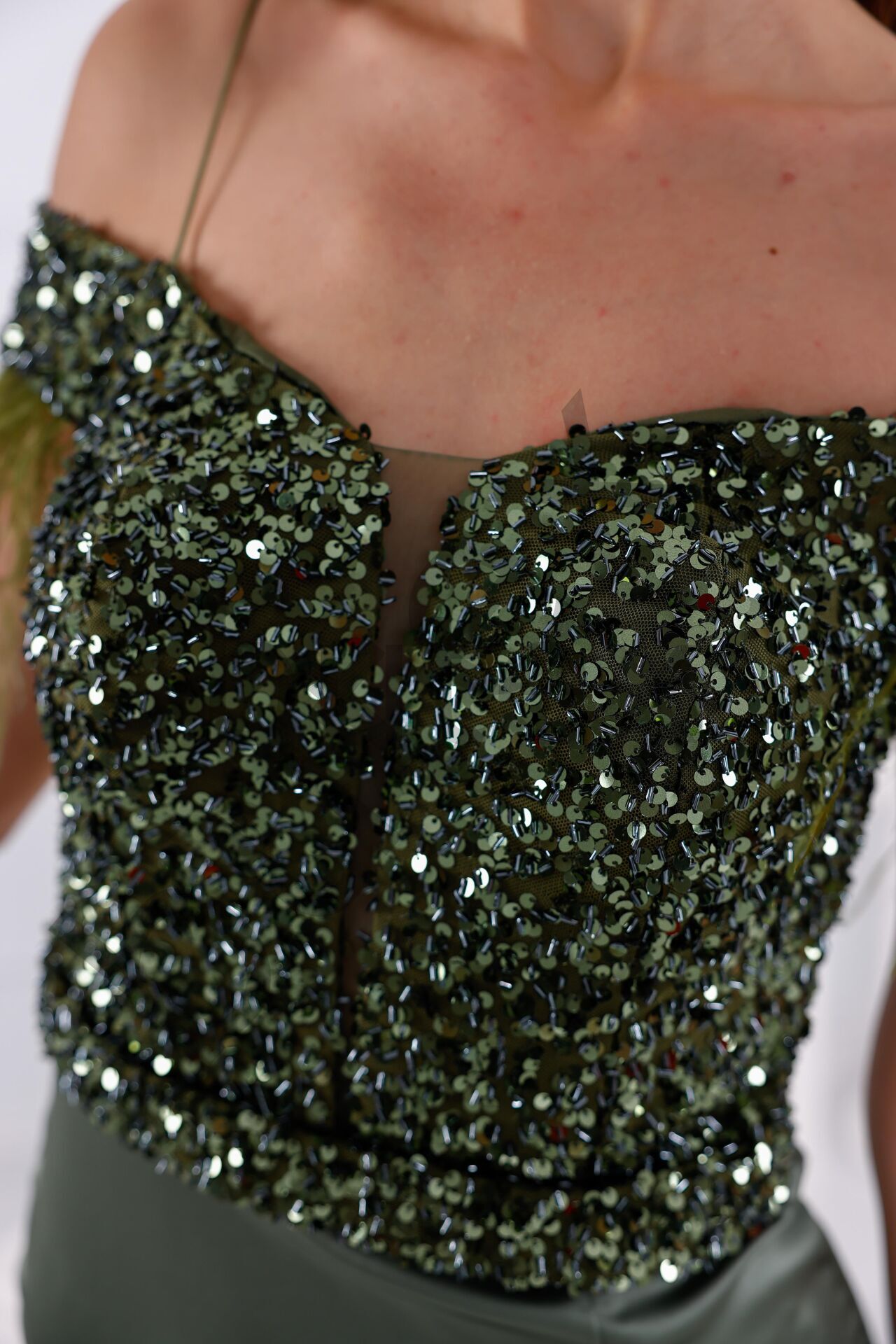 Üstü payet işlemeli, alt kısmı saten balık model abiye elbise, zarif ve şık tasarımıyla özel davetlerin vazgeçilmezi. Vücuda oturan kesimi ve parlak detaylarıyla göz alıcı bir stil sunar. Modern ve klasik çizgileri bir arada bulunduran bu elbise, kusursuz şıklık sağlar.BEDEN TABLOSU İÇİN TIKLAYINIZ